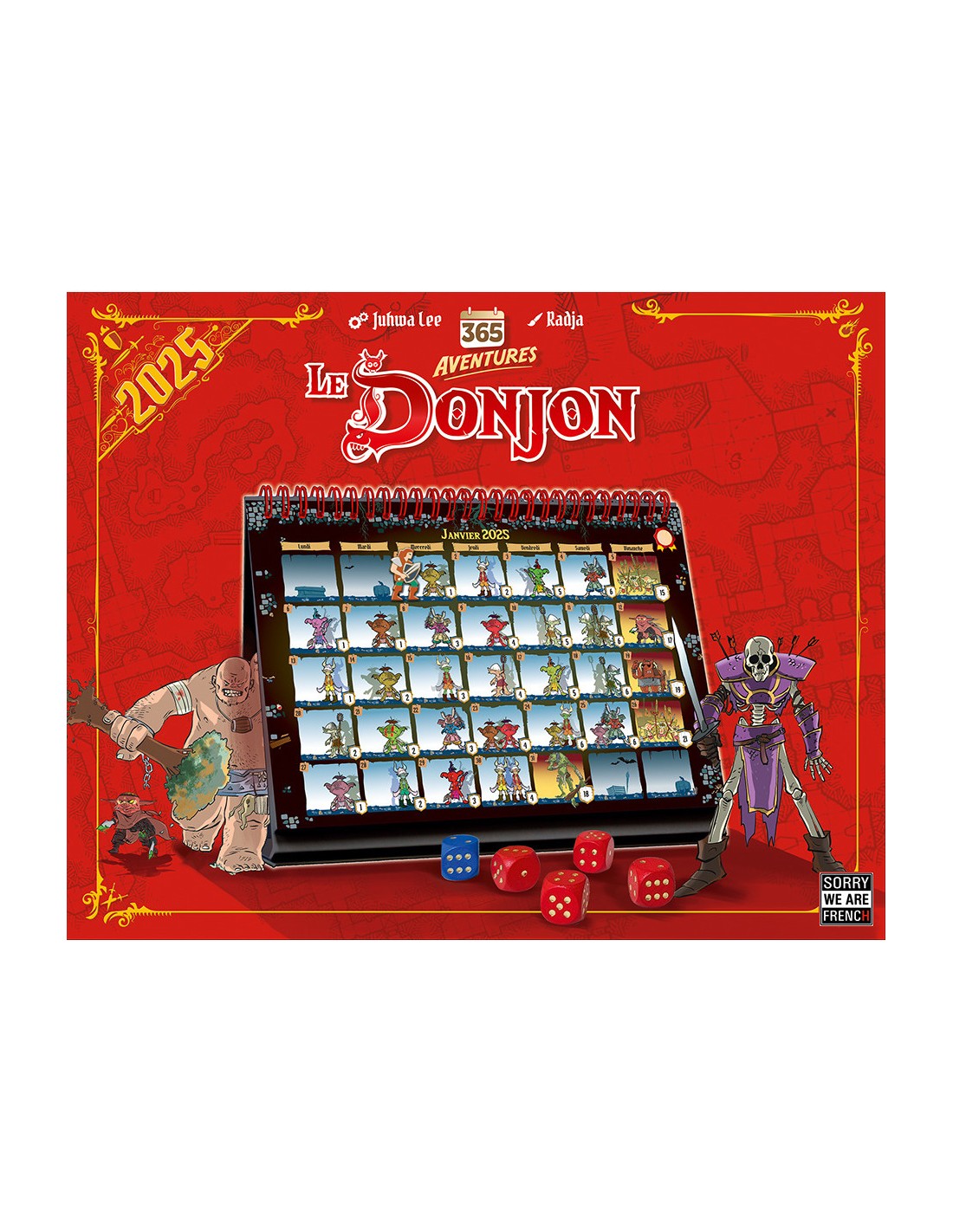 Sorry We Are French est ravi de vous présenter en exclusivité sa dernière création pour l’année 2024 : un Olni (Objet Ludique Non Identifié) qui promet de vous étonner ! Découvrez 365 Aventures – Le Donjon, un concept innovant développé par Sorry We Are French, fruit de l’imagination de Juhwa Lee et sublimé par les illustrations de Radja Illustrateur.- Installez-le sur votre bureau dès le 1er janvier 2025 et vivez, jour après jour, des confrontations avec de nouveaux monstres.