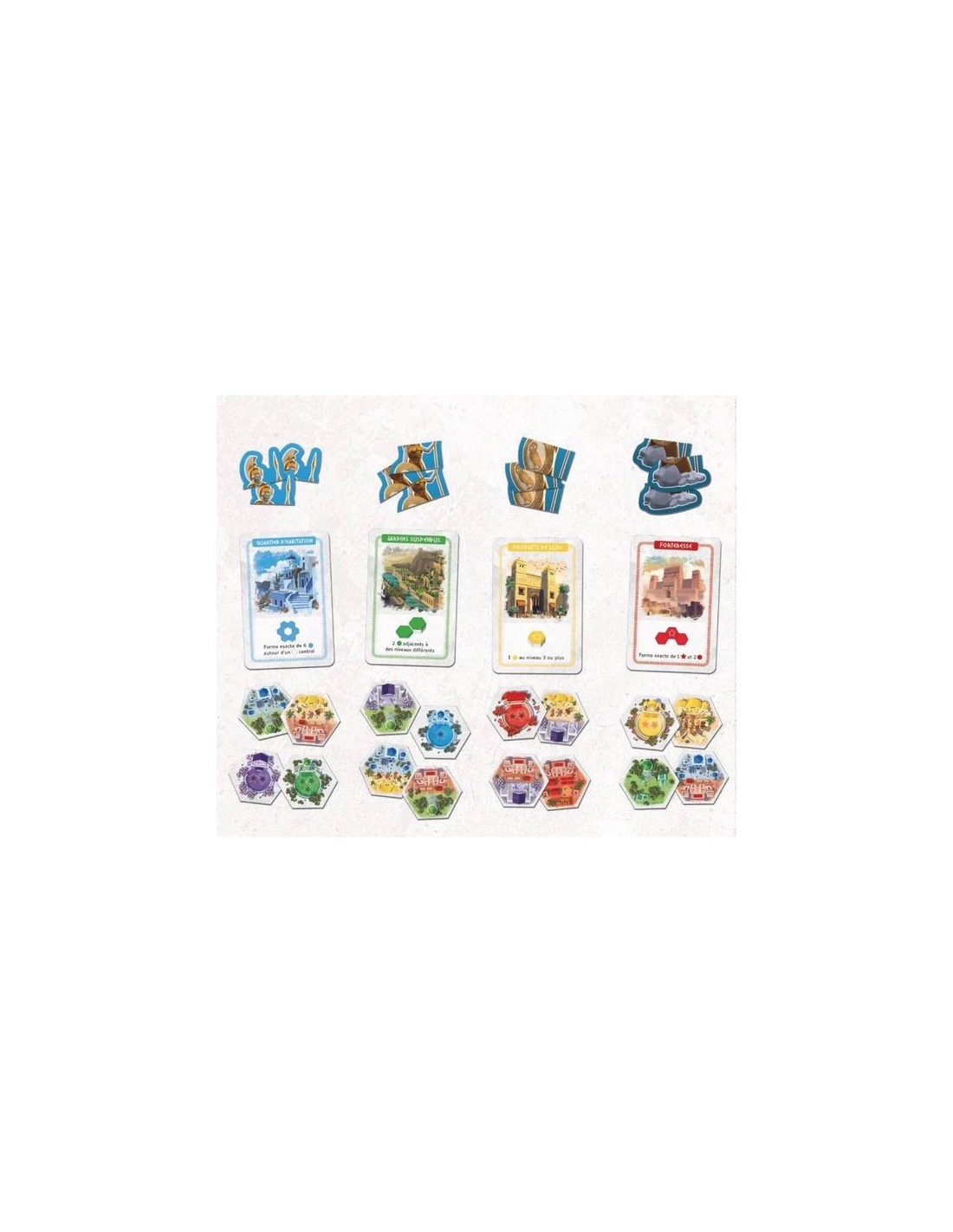 Dans l'extension Akropolis: Athena, vous devez utiliser vos compétences pour compléter des cartes de Construction en créant des agencements spécifiques dans votre ville.