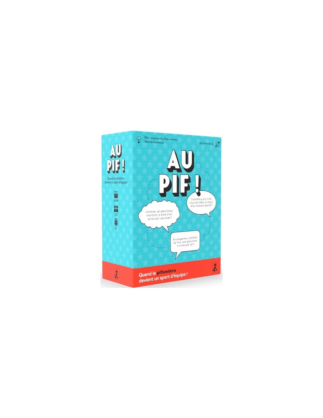 Au Pif ! est un jeu de communication qui promet de bons moments de discussion et d'estimations approximatives. Votre but : classer les cartes dans l'ordre croissant en tentant d'estimer les réponses aux questions. Parviendrez-vous à obtenir le score parfait en équipe ou finirez-vous par vous gratter la tête ? 1. Placez une carte Référence avec un nombre au centre de la table, puis piochez 8 cartes question. 2.