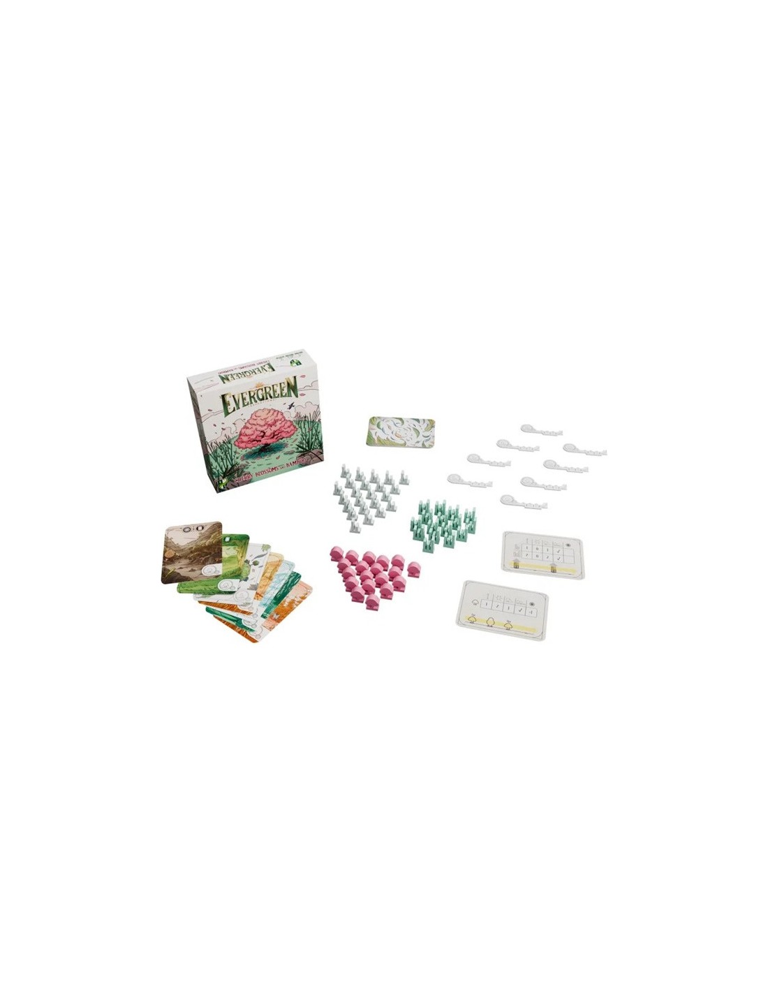 Evergreen – Fleurs de cerisiers et Bambous est un ensemble de 2 modules d'extension pour Evergreen. Ce jeu introduit les cerisiers en fleur qui augmente la fertilité de vos biomes, et les bambous qui vous permettent de créer de grandes forêts très rapidement ! Découvrez de nouvelles stratégies de planification dans vos biomes pour récupérer le maximum de points !