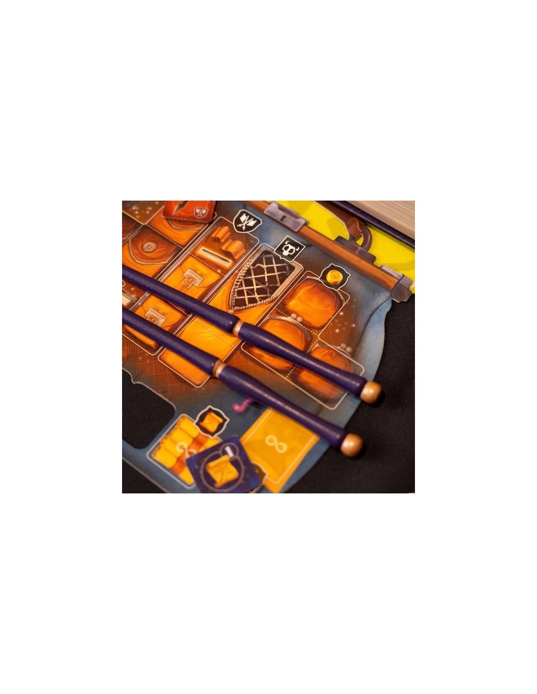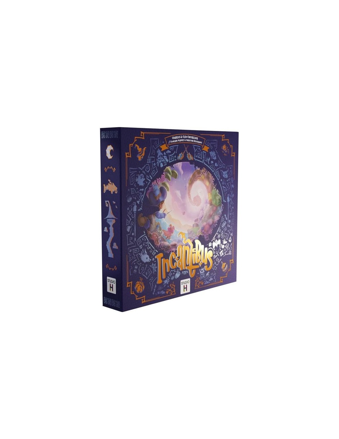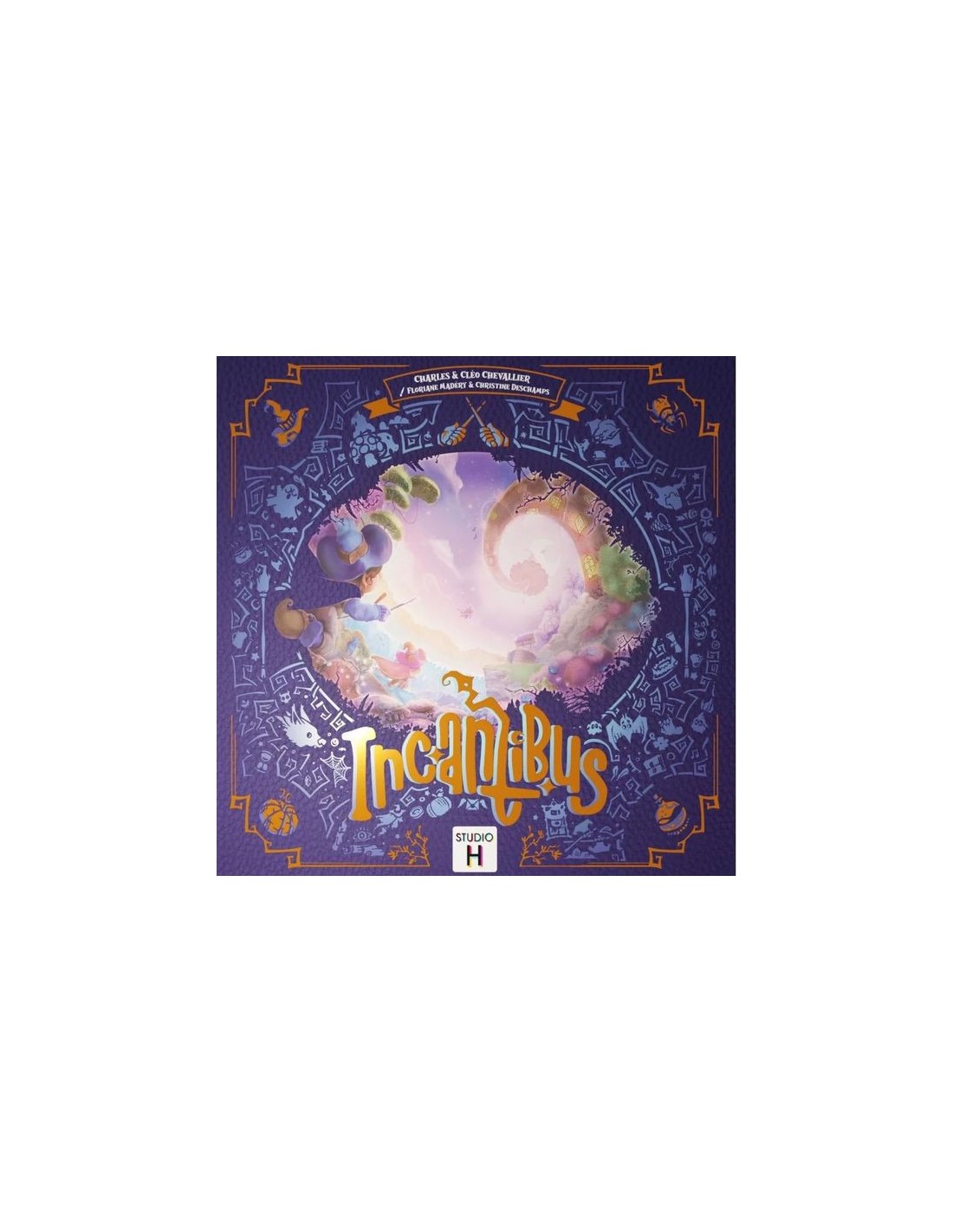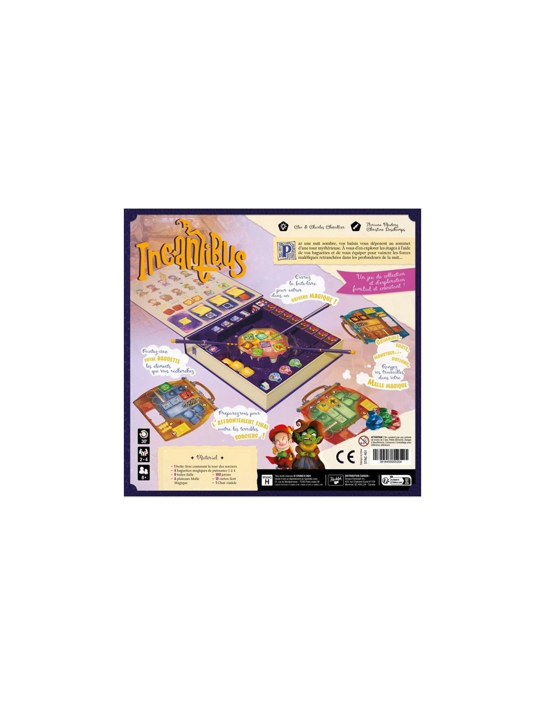 "Par une nuit sombre, vos balais vous déposent sur le toit d’une tour mystérieuse. À vous d’en explorer les étages munis de vos baguettes et de vous équiper pour vaincre les forces maléfiques retranchées dans ses profondeurs… Ouvrez la boîte-grimoire pour entrer dans l'univers magique d'Incantibus.