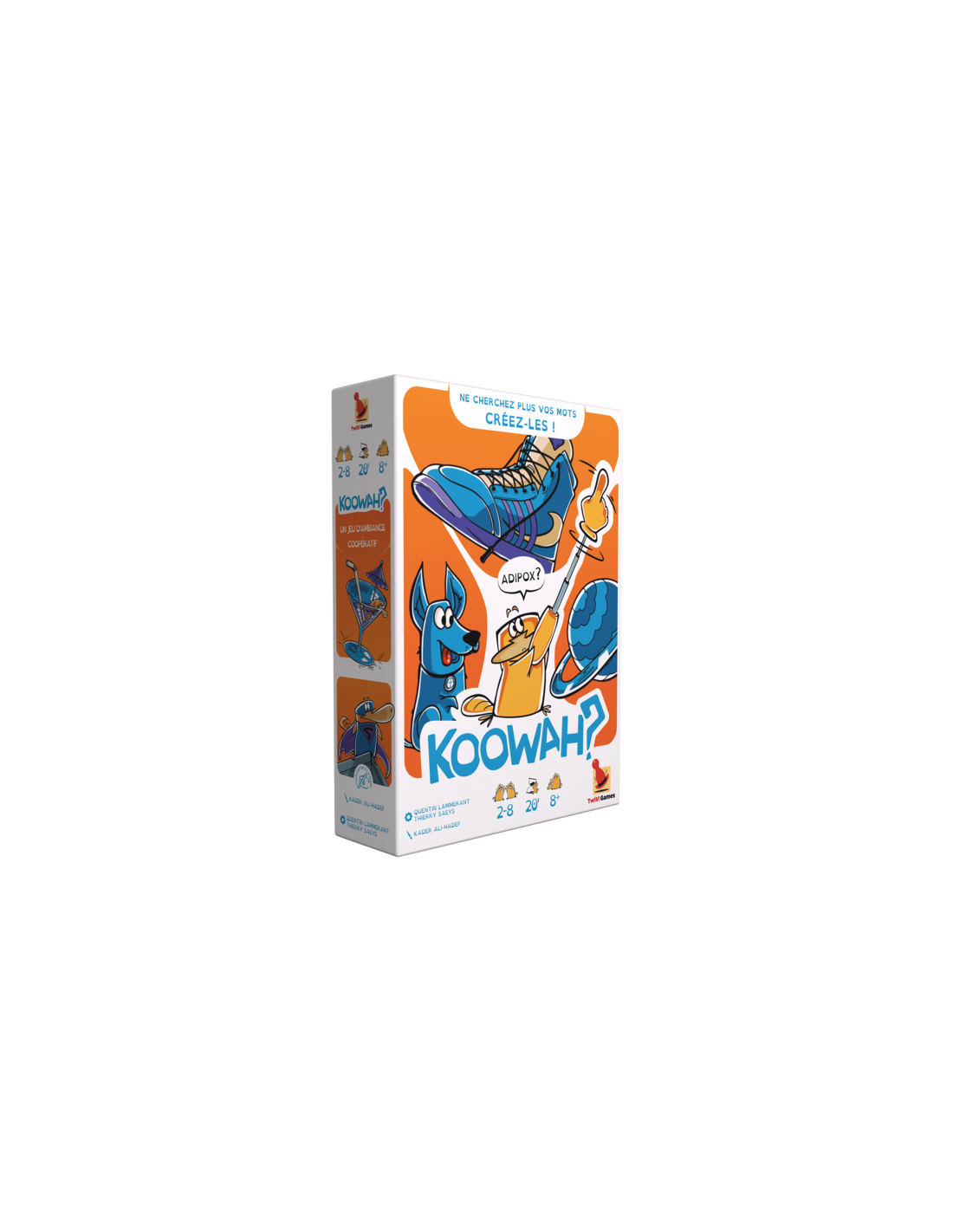 Bienvenue dans l'univers déjanté de Koowah, où les dictionnaires n'existent pas et où les ornitos sont rois ! Dans ce jeu de coopération créative, vous ne cherchez pas le mot juste, vous l'inventez. Le concept : Chaque joueur reçoit 6 cartes lettres (3 voyelles et 3 consonnes) pour créer un mot totalement inédit.