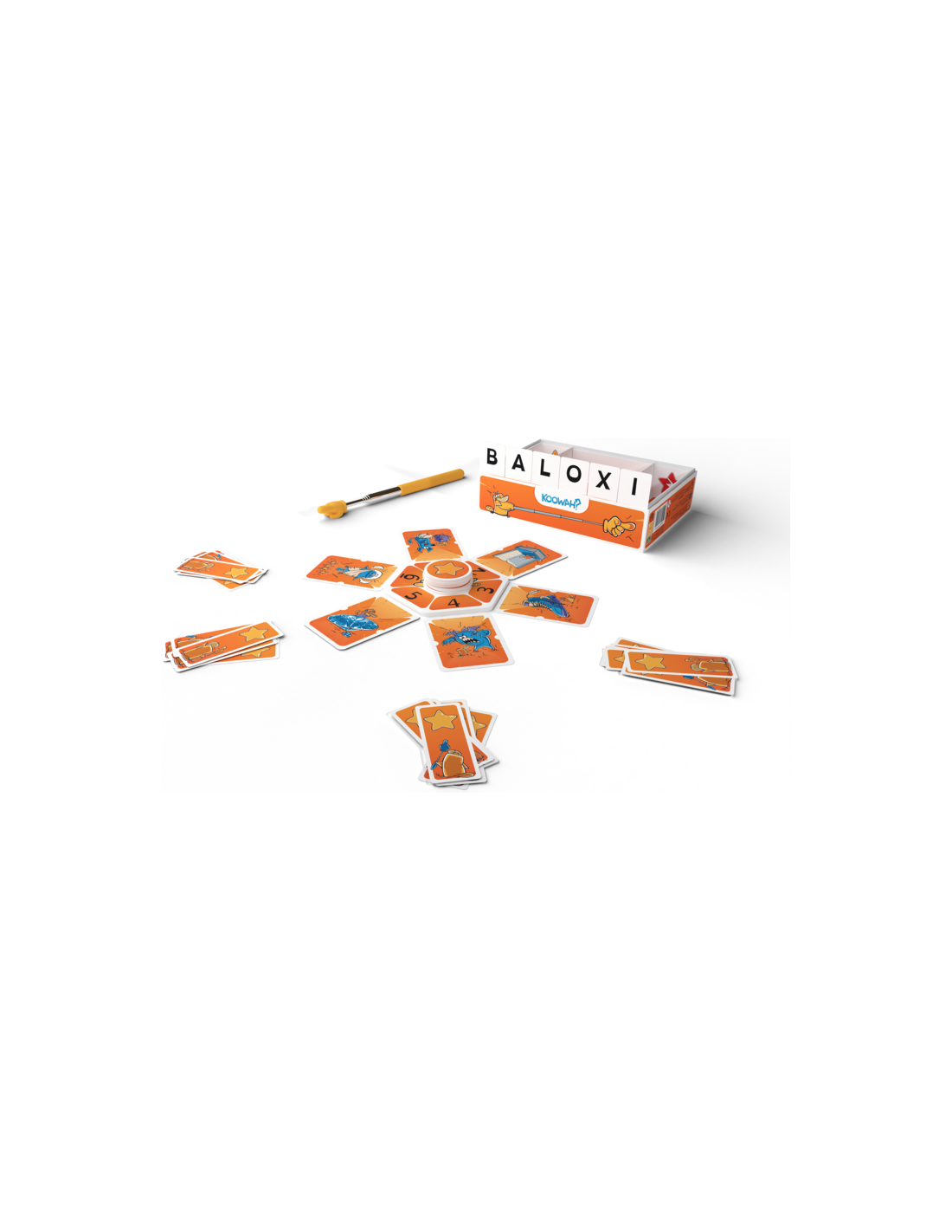 Les règles ? Il doit être prononçable et, surtout, ne pas exister ! Associez-le à une des 6 images proposées, ce sera aux autres joueurs de vous comprendre,…ou pas ! Comment jouer : Une fois votre mot révélé, les autres joueurs entrent en scène. Ils doivent coopérer pour éliminer les images qui ne correspondent pas à votre mot, en utilisant un bras télescopique pour désigner les cartes.