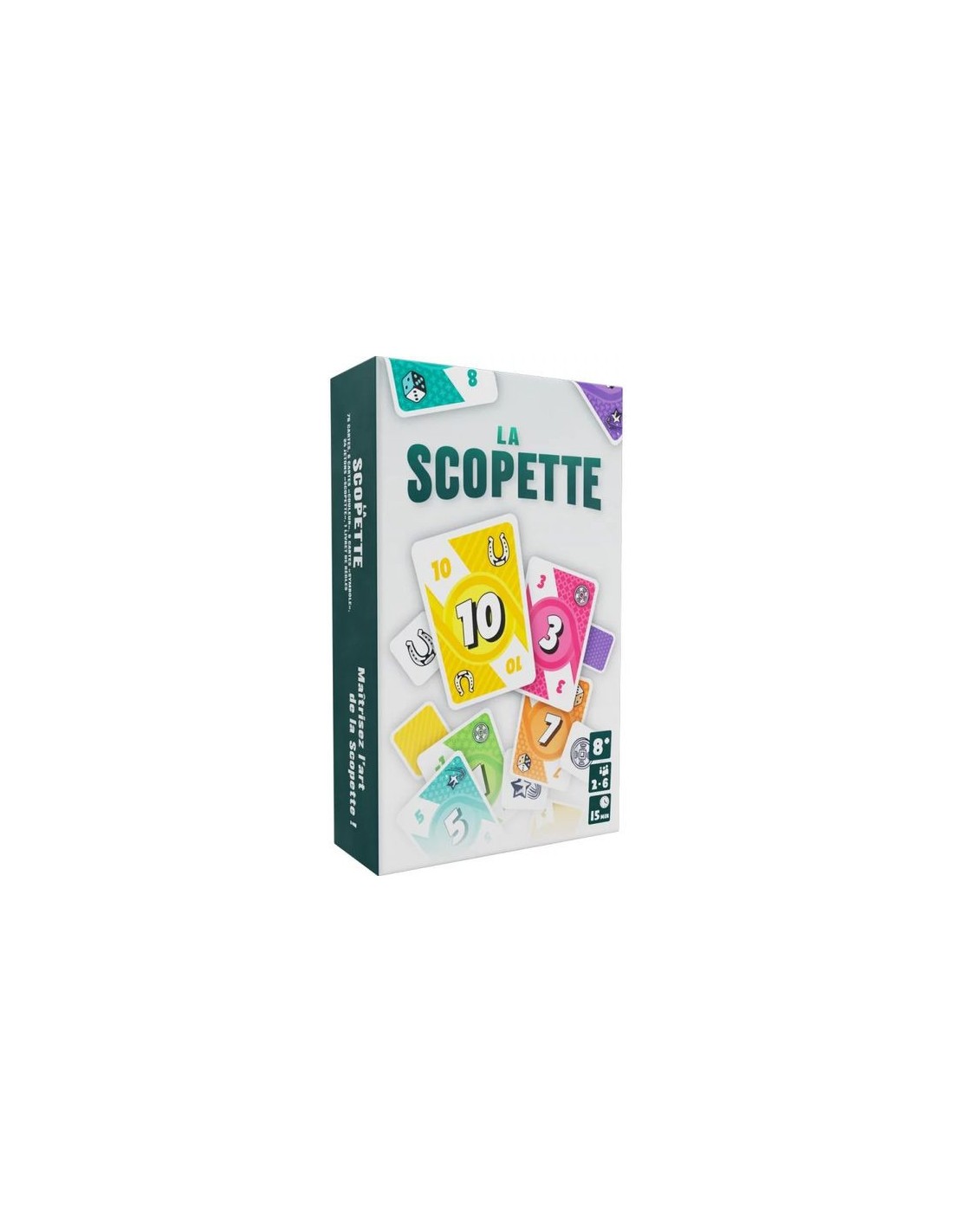 Combinez habilement vos cartes, surveillez votre couleur secrète et visez les bons symboles pourmarquer un maximum de points ! Videz la table ou votre main pour décrocher la Scopette et prendre l’avantage ! En 15 minutes, tout peut basculer : un jeu rapide et plein de rebondissements !