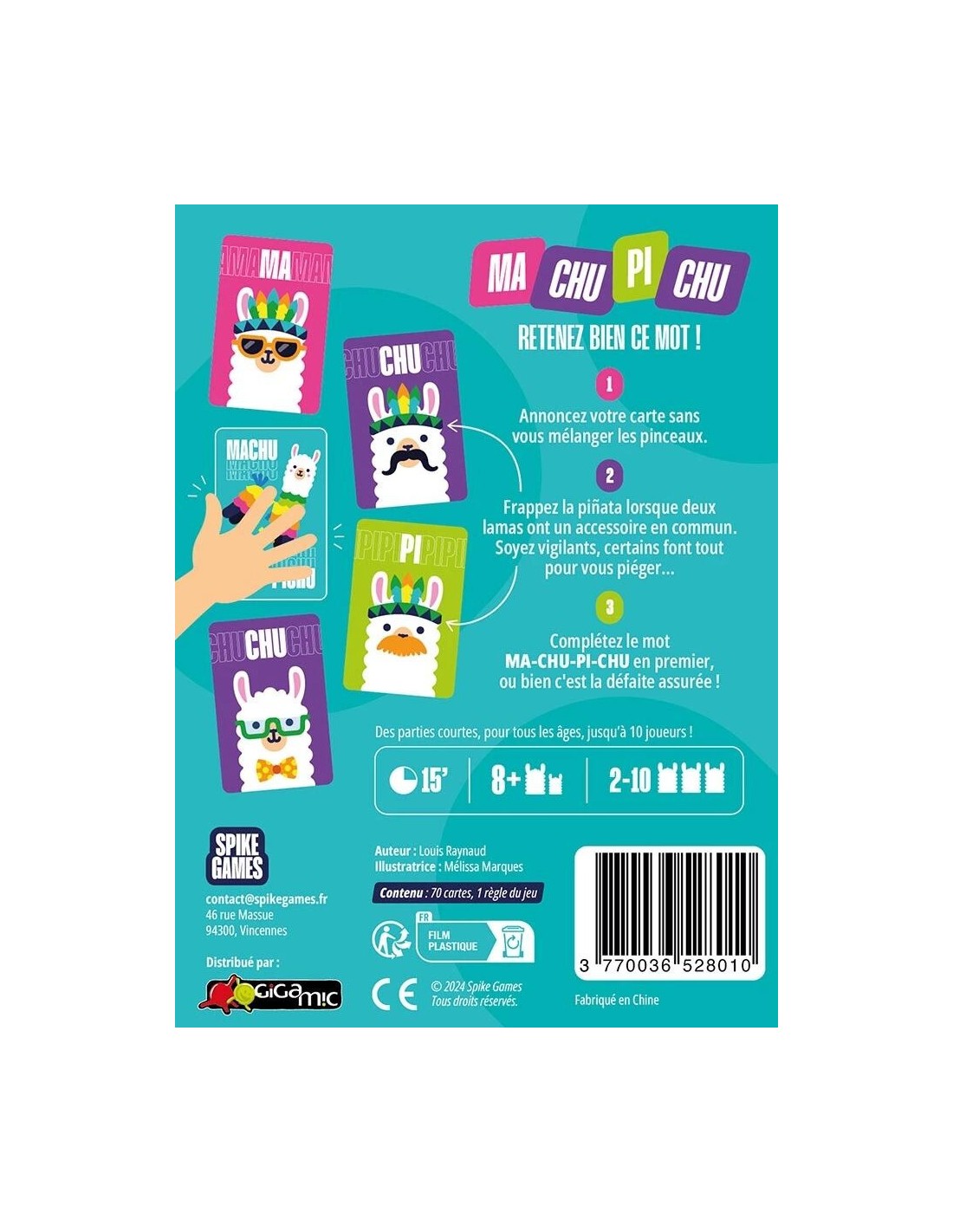 Un jeu simple, fun et ultra dynamique, parfait pour des parties pleines d’énergie en famille ou entre amis. De 2 à 10 joueurs, dès 8 ans. Alors, prêts à dompter les lamas ce Machu Pichu ?