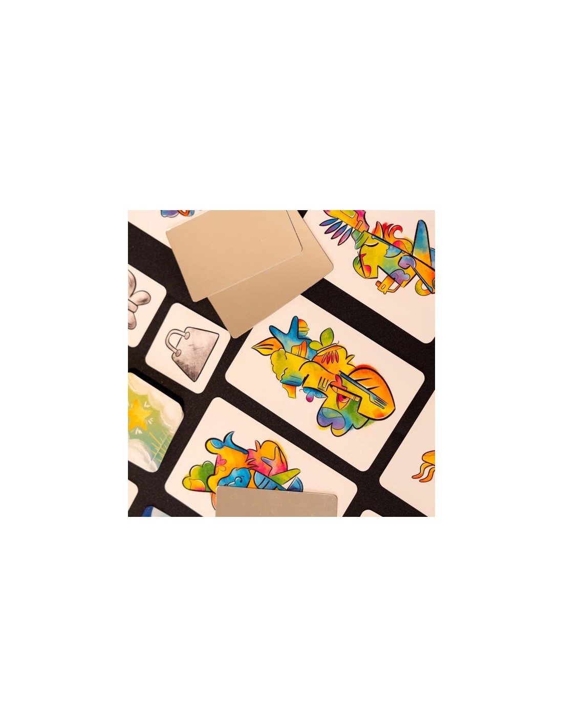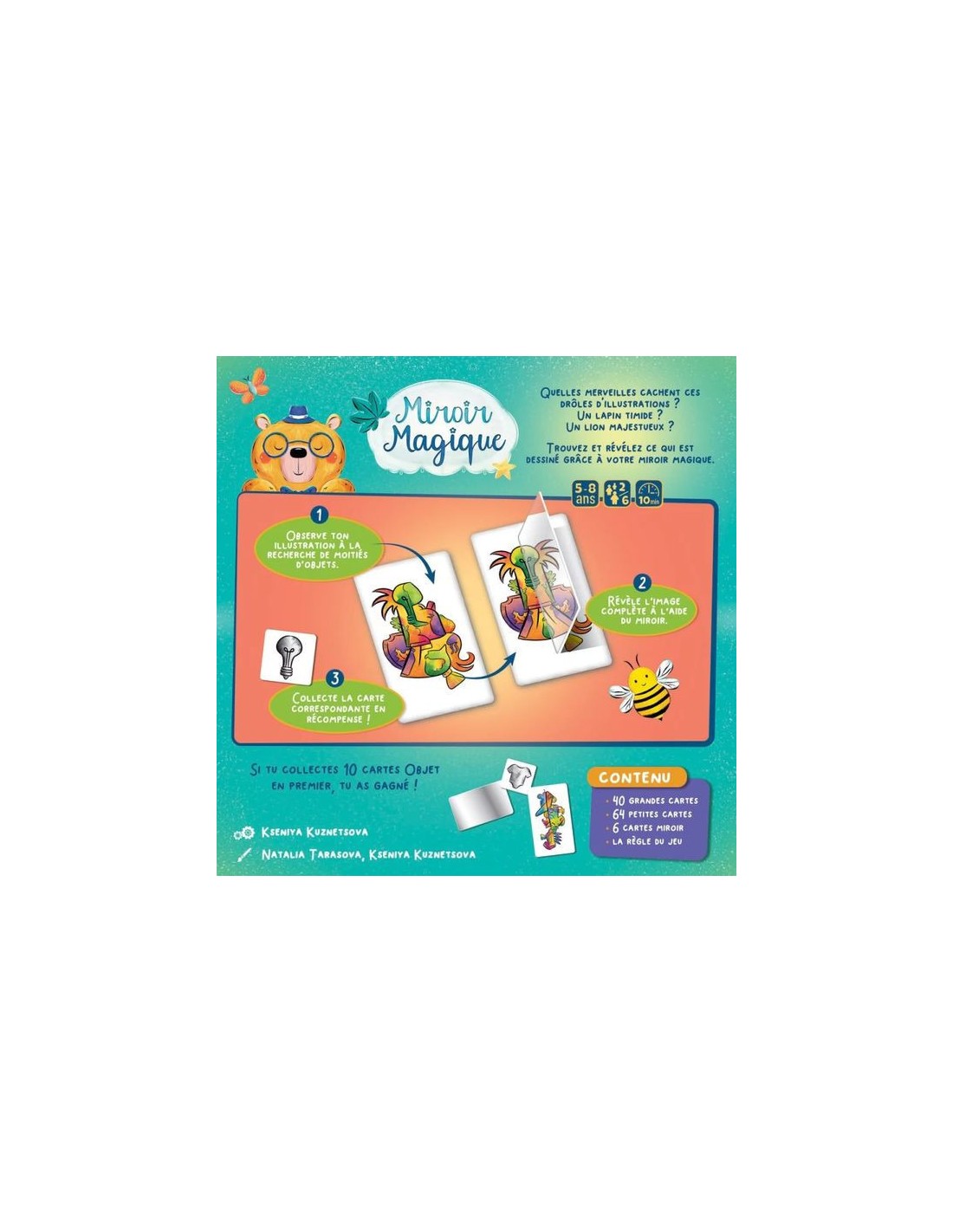 Quelles merveilles se cachent dans ces curieuses images ? Est-ce un lion assis ? Ou un lapin timide ? Ou alors les deux ? Découvrez qui vous attend de l'autre côté du miroir ! Transformez les moitiés d’image en un tout à l'aide des cartes miroirs : une ligne courbe se révèle être une aubergine, et un drôle de gribouillis est en fait un palmier géant.