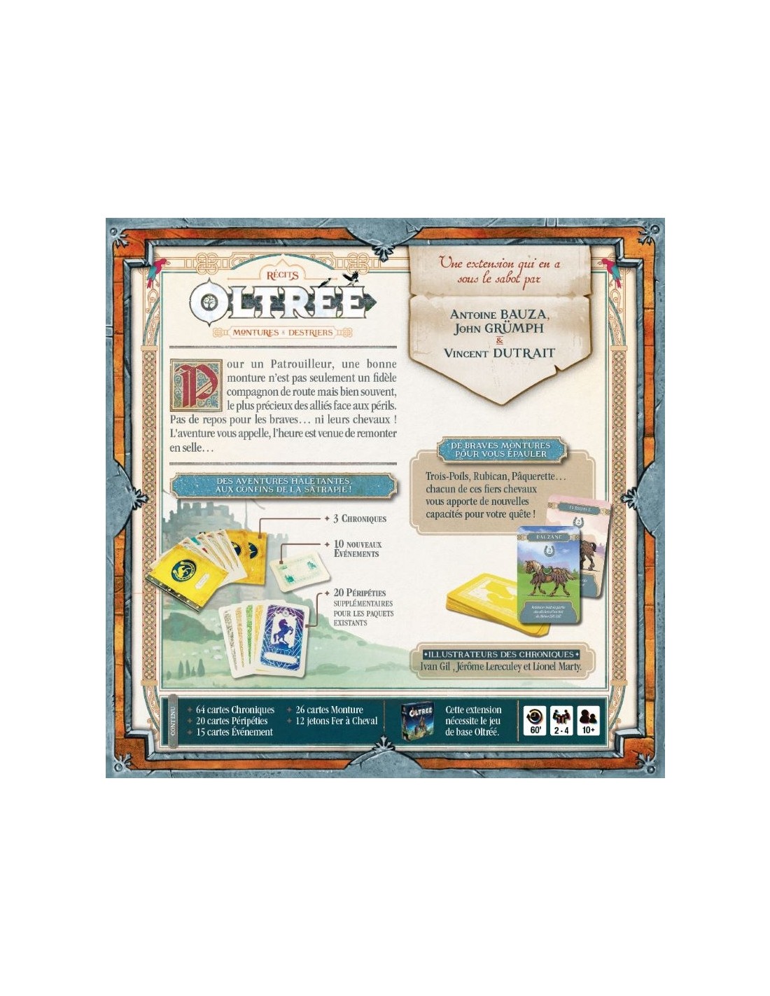 Du même format que la précédente, cette extension introduit 3 nouvelles Chroniques, vous amenant à explorer les frontières sauvages de la satrapie. Un nouveau module introduit de courageuses montures pour vous soutenir dans vos aventures ! Trois-Poils, Rubican, Pâquerette... chacun de ces fiers chevaux apporte ses capacités uniques à votre quête.