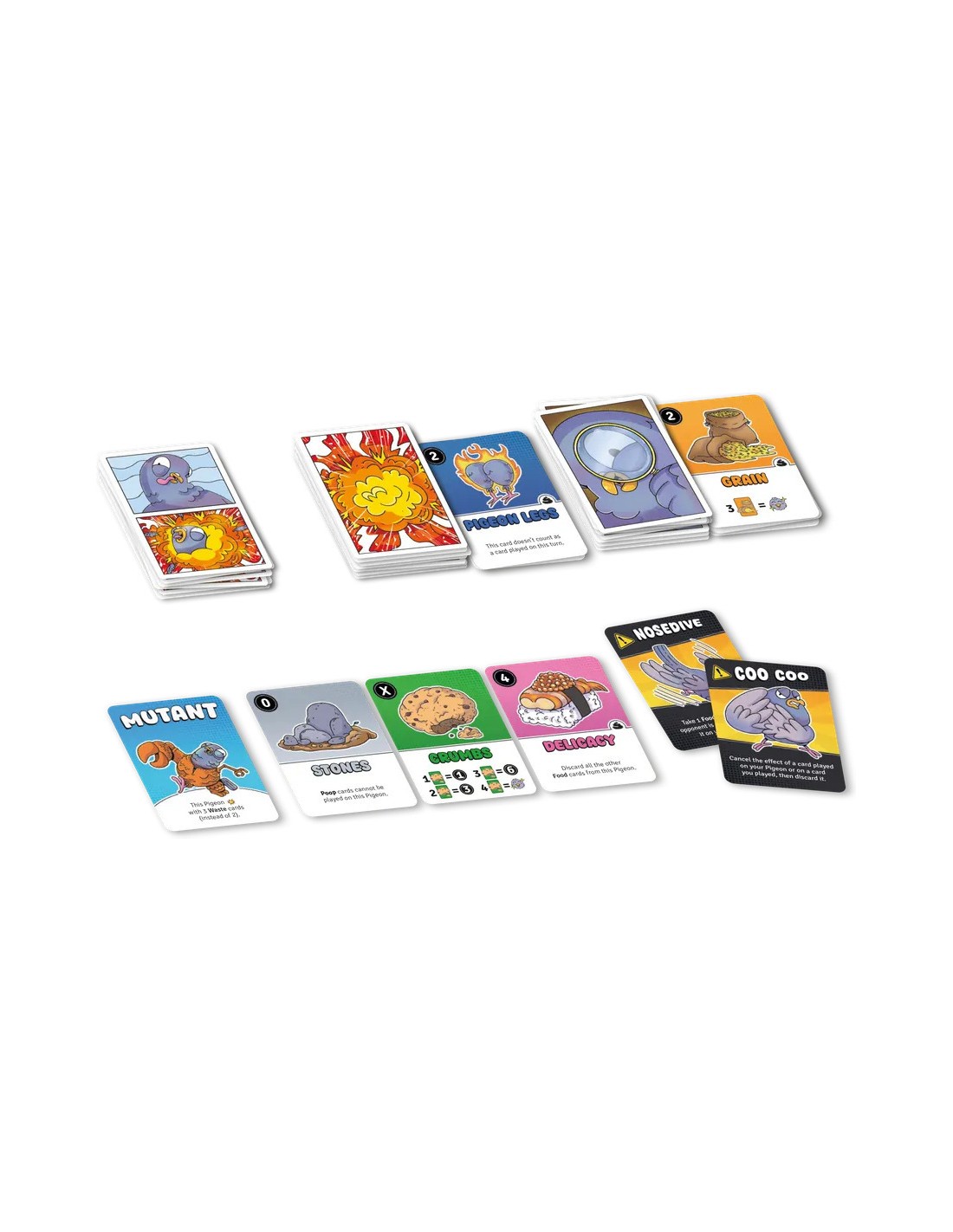 Les pigeons cherchent de la nourriture, et sont prêts à manger n’importe quoi ! Votre but pour gagner est de rassasier vos pigeons en les nourrissant le mieux possible. Mais attention, vos adversaires peuvent les nourrir aussi, en les gavant jusqu’à ce qu’ils explosent!! Ce qui est drôle, c’est que vous pouvez en faire autant…