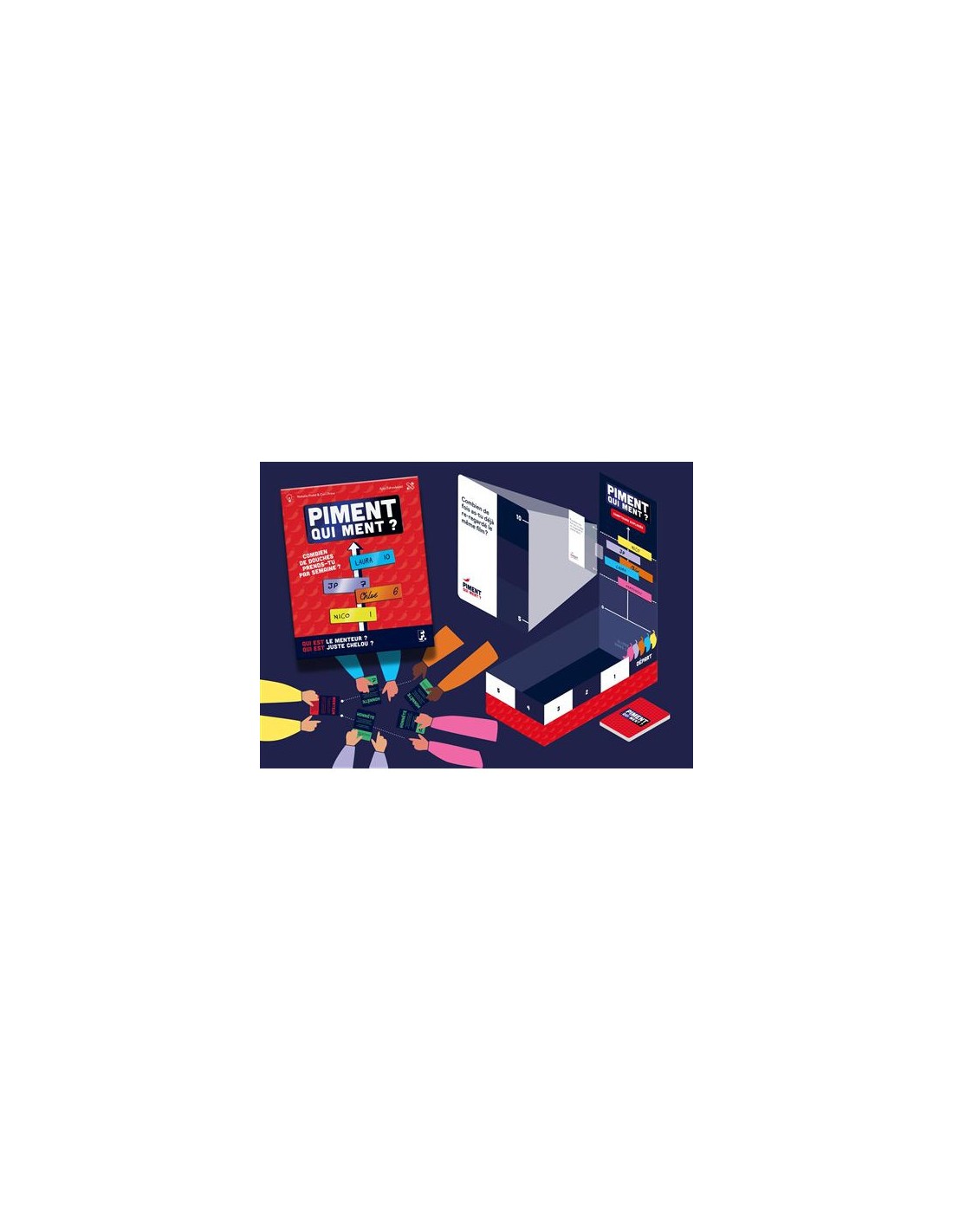 Les Honnêtes gagnent des points s'ils identifient le Menteur (bonus s'ils sont les seuls). Le Menteur marque des points pour chaque personne bernée, avec un bonus spécial s'il a osé une réponse extrême (la plus basse ou la plus haute) ! Piment qui ment est le jeu de soirée ultime : mensonges, fous rires et secrets dévoilés s'entremêlent !