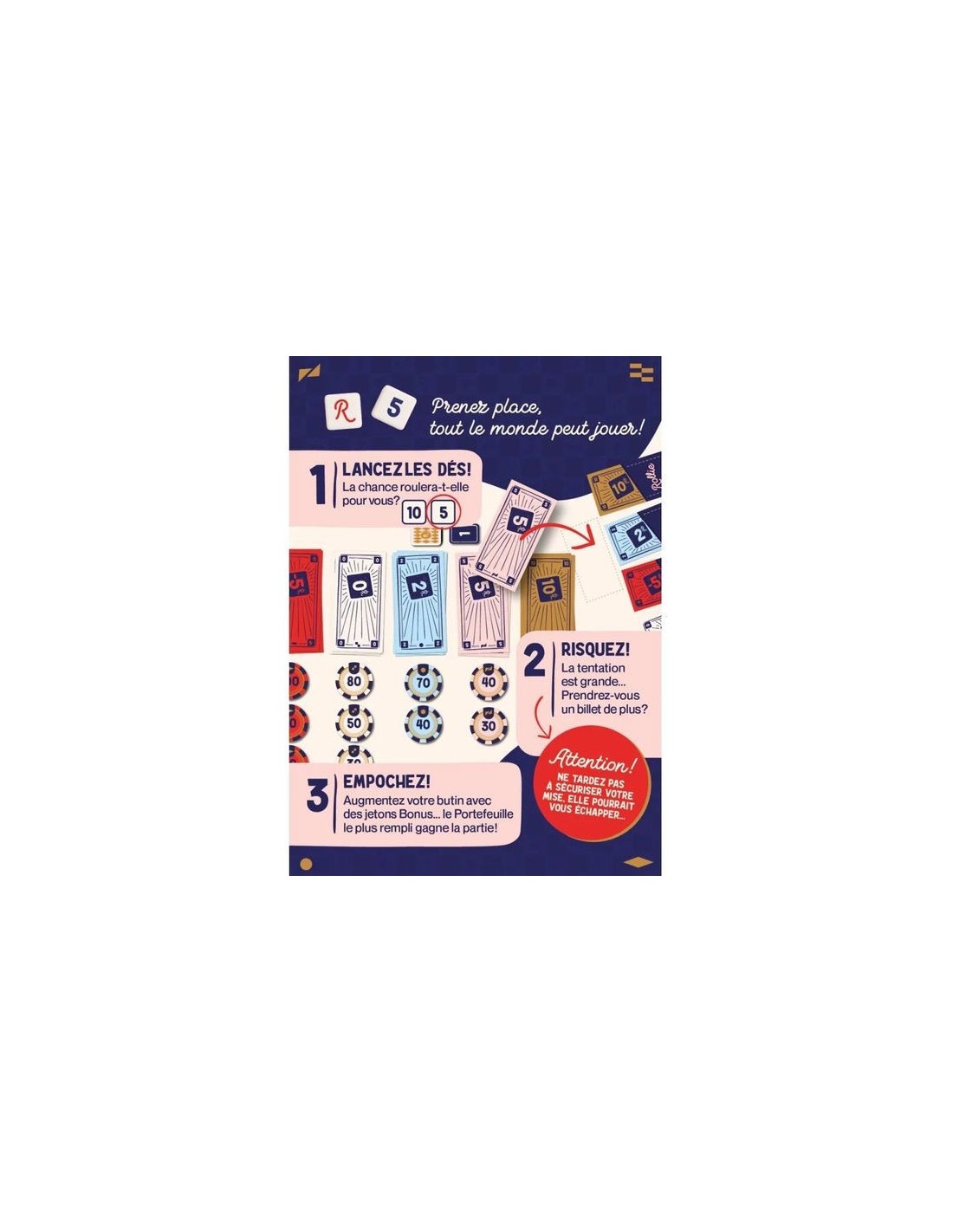 Si les dés affichent la même valeur et que cette valeur est dans leur mise, c’est un krach! Les joueurs concernés perdent tous les billets de leur mise. Tentez de cumuler des billets dans votre portefeuille en évitant les Krachs. Entre appât du gain et précaution, saurez-vous faire les bons choix et amassez le plus d’argent pour remporter les jetons bonus à la fin de la partie?