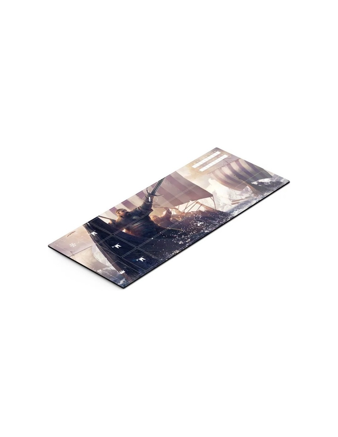 Tapis de Jeu Gwent : Le Jeu de Cartes Légendaire - Skellige apporte une touche authentique et intemporelle à vos parties de Gwent : Le Jeu de Cartes Légendaire. Faites honneur aux clans insulaires avec ce tapis de jeu Skellige, aux couleurs froides et aux symboles tribaux marins. Inspiré des légendes nordiques, ce terrain incarne la brutalité et la fierté des guerriers de l’océan. Avec sa texture confortable et sa base antidérapante, il résiste à toutes les tempêtes de cartes.