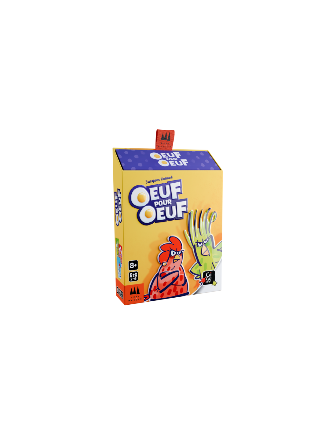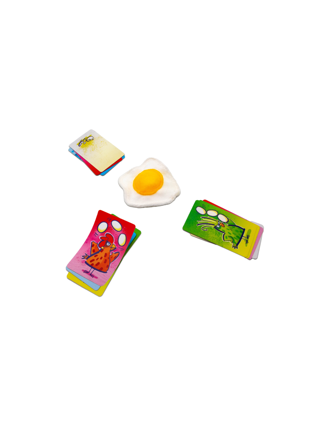 Qui a le plus d'oeufs ? Toi ? Moi ? Nous ? À votre tour, révélez une carte et annoncez la bonne réponse en fonction des cartes visibles. Un faux pas et vous récupérerez toutes les cartes. Mais si il y a une égalité entre 2 couleurs, il faudra taper l'œuf au plat le plus vite possible !