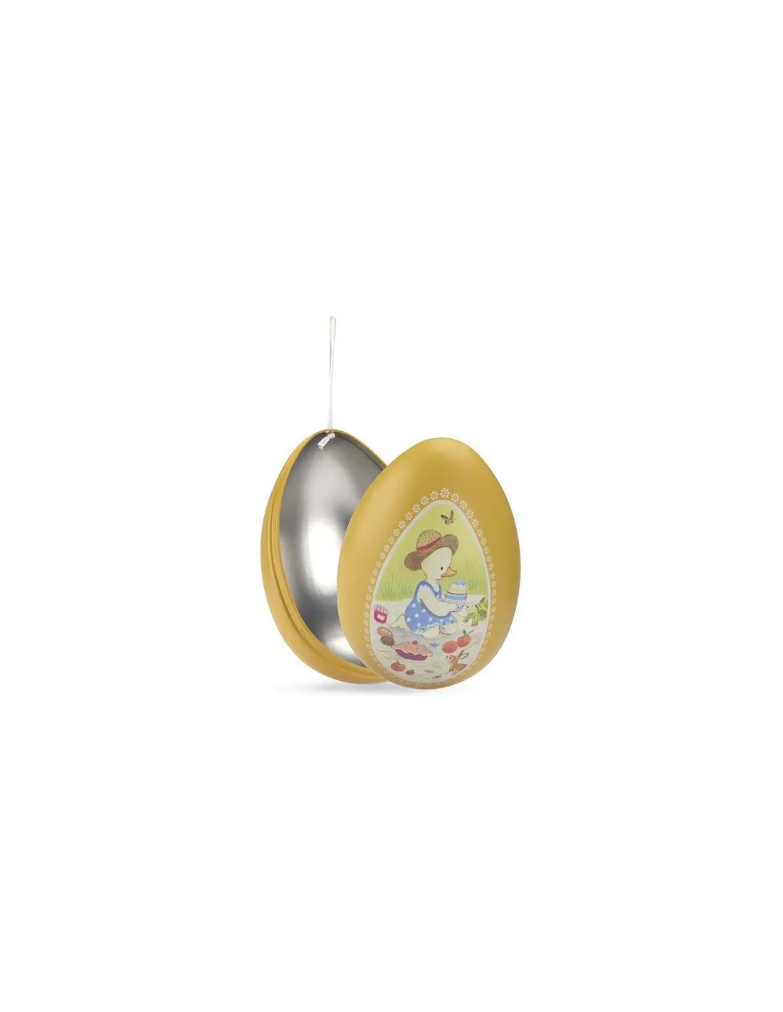 Œuf en métal de 19 cm décoré avec les illustrations de la Grande Famille de Camille Jourdy. Pile, Jeanne prépare le pique-nique. Face, Sylvain revient avec son panier rempli après une chasse aux œufs mémorable. S'ouvre pour cacher un tas de surprises ! Depuis 1997, la collection La grande famille raconte les histoires de Nini la souris, Sylvain le lapin et tous leurs amis au cœur de la forêt.