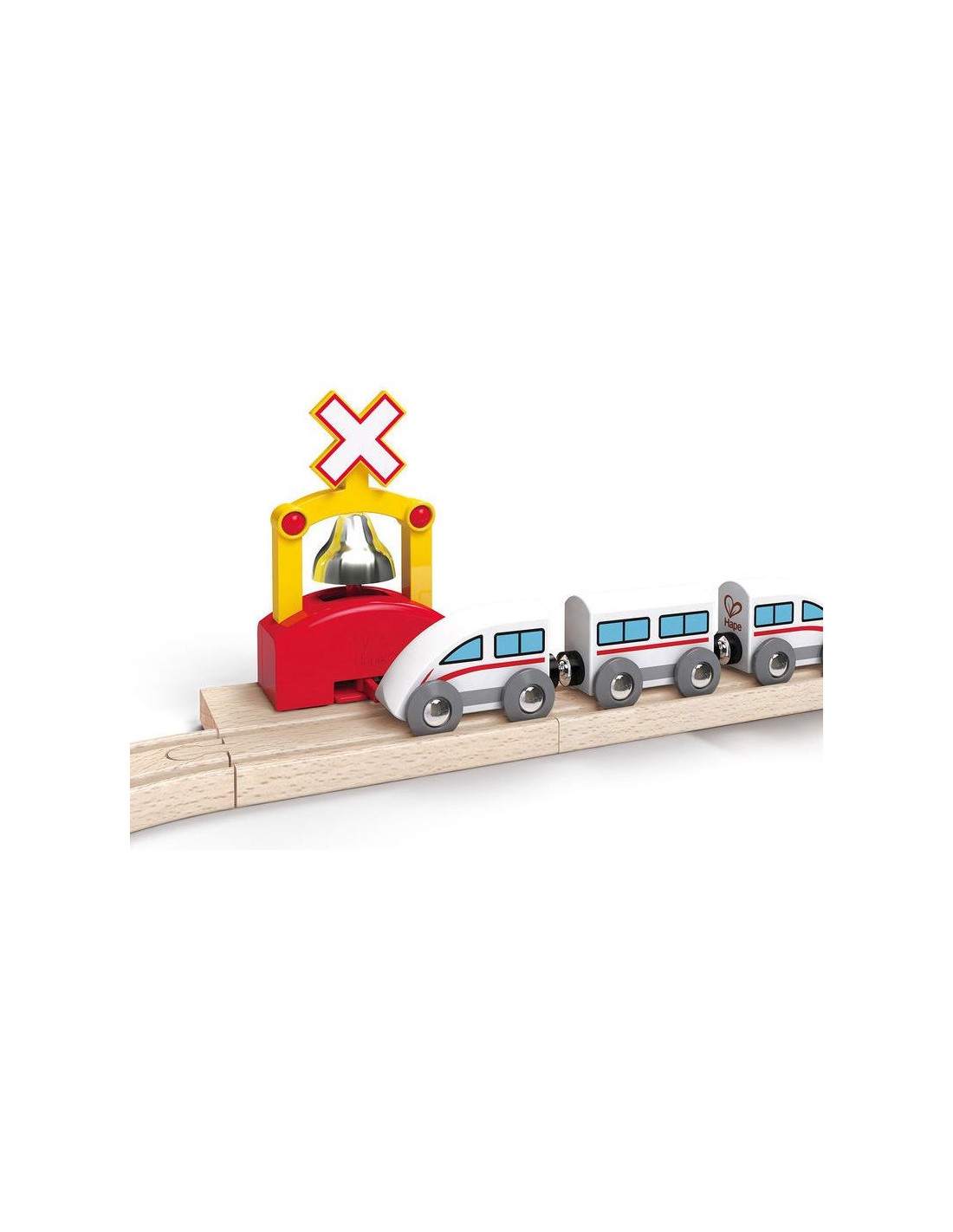 Complétez votre circuit train en bois avec la Cloche de signalement de Hape pour les enfants à partir de 3 ans.