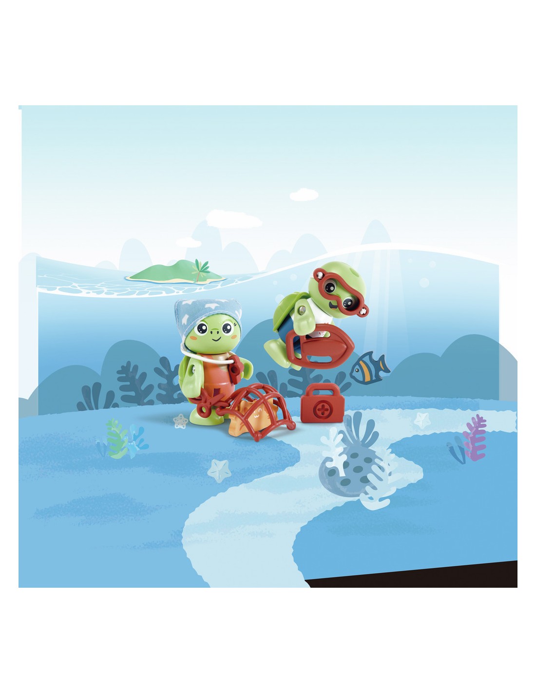 - Une Multitude D’Accessoires : ce set comprend deux figurines de tortue, un crabe, un poisson, un sifflet, une planche de surf, une paire de jumelles, une trousse de premiers secours, une paire de ciseaux, un filet de sauvetage, un bandana et un dépliant