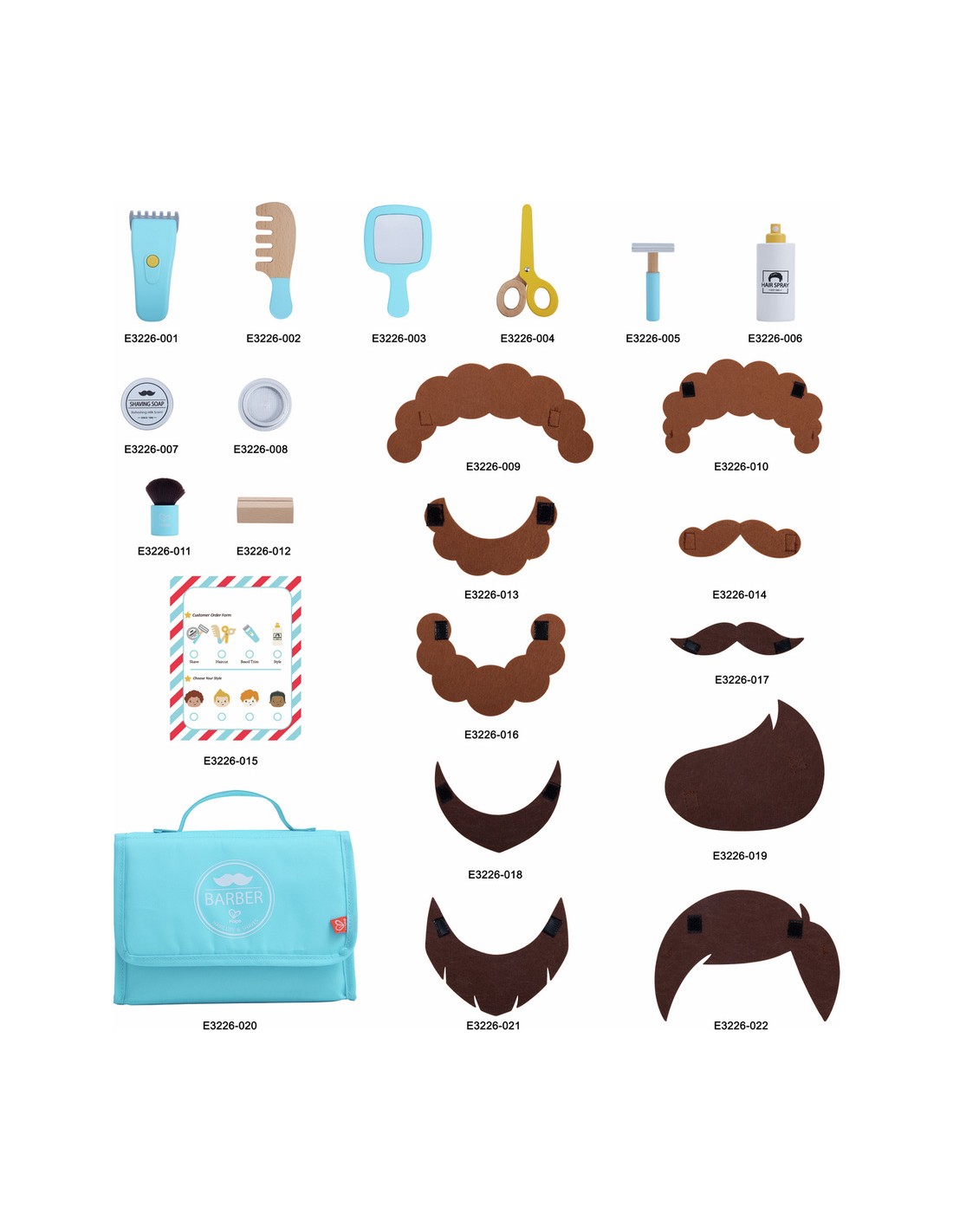 En jouant au coiffeur et au client, les enfants apprennent à travailler ensemble, à parler et à comprendre de nouvelles situations. Ce jeu de rôle permet également de réduire les tensions autour des véritables visites chez le coiffeur. Tout est soigneusement rangé dans le sac inclus, ce qui facilite le rangement et apprend aux enfants à prendre leurs responsabilités.