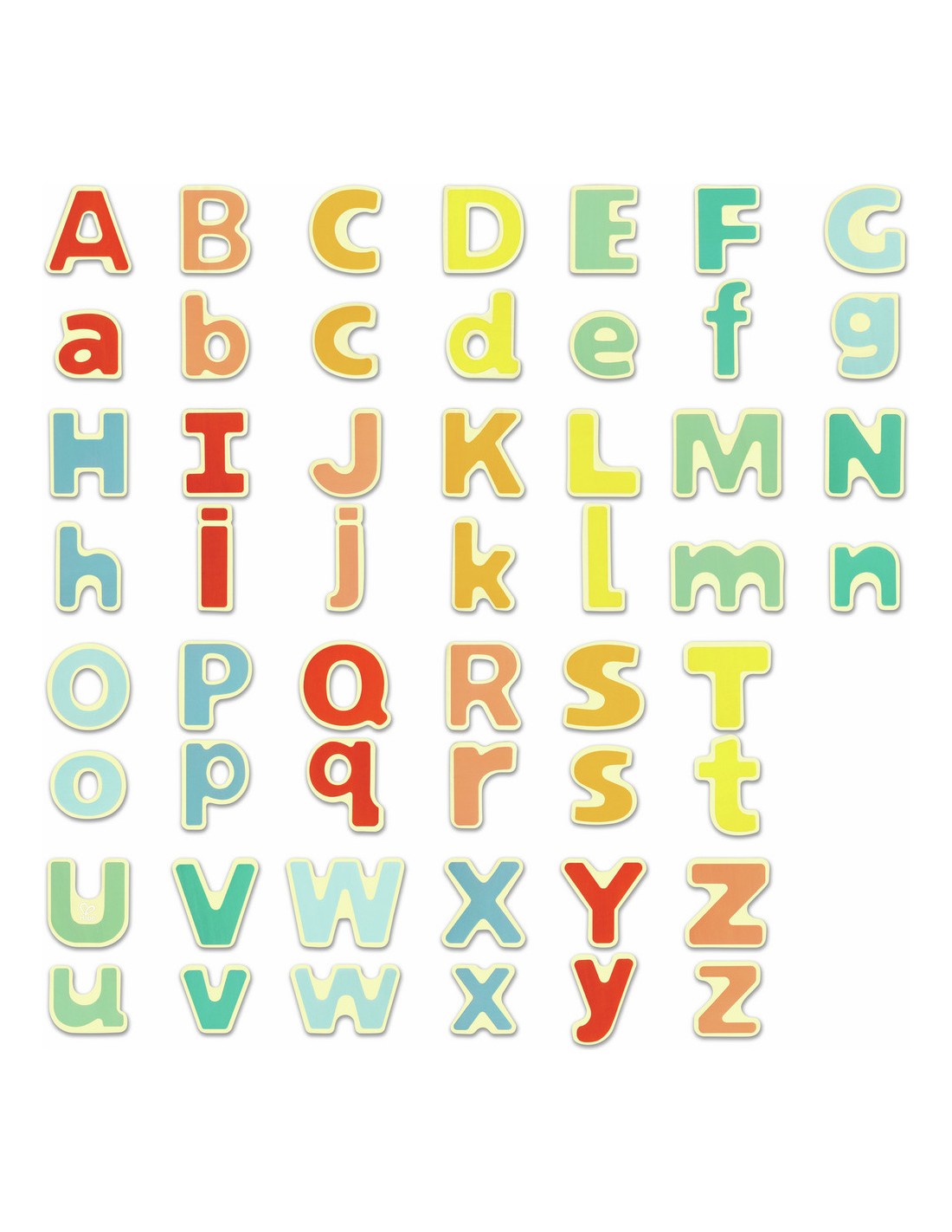 Ensemble de 52 lettres magnétiques pour apprendre l'alphabet, les majuscules et les minuscules.