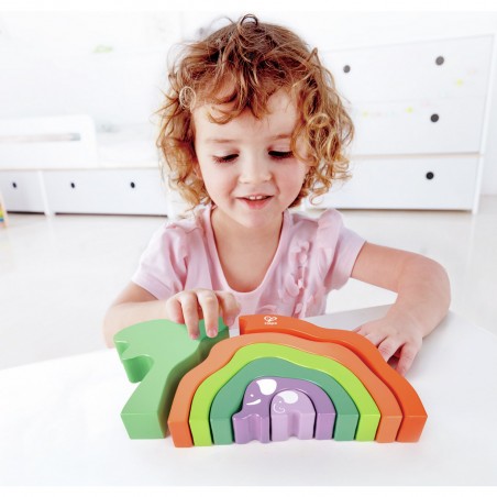 - Contient 5 types de blocs aux formes, tailles et couleurs différentes ainsi que deux figurines d’éléphants.