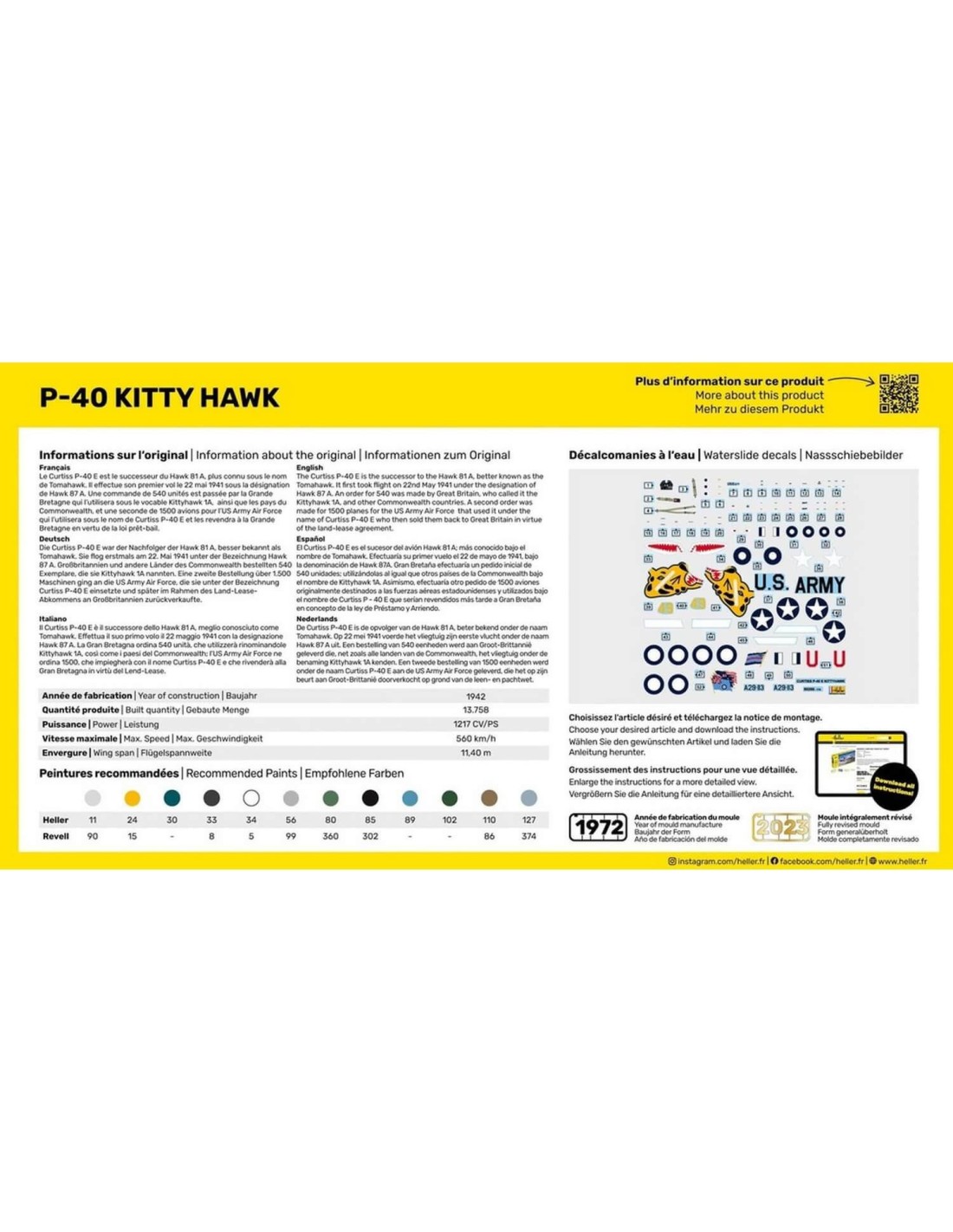 Maquette avion - Kit de démarrage 40 Kitty Hawk 1:72 - Starter Kit (Kit de démarrage tout inclus : colle, pinceau, peintures) - Heller 56266