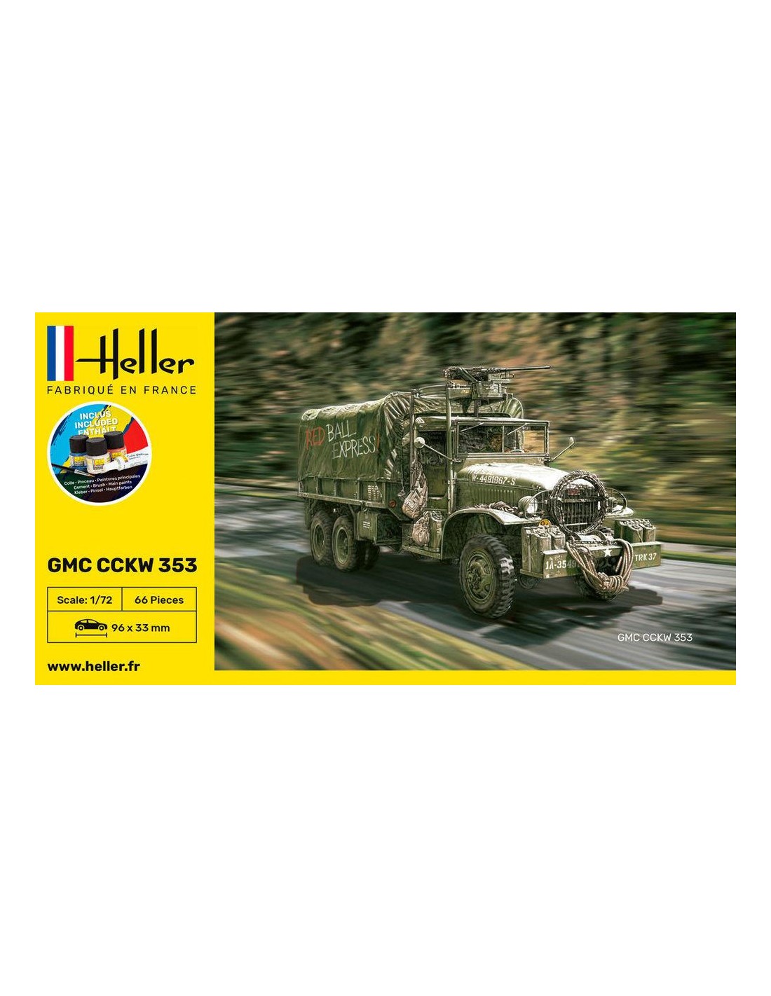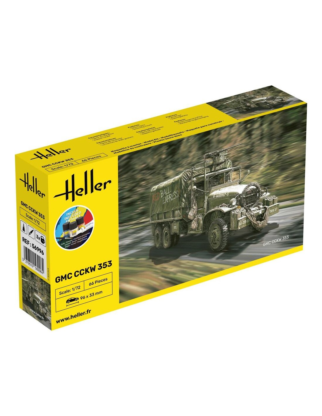 Maquette véhicule militaire - Kit de démarrage - Gmc Cckw 352 1:72 - Starter Kit (Kit de démarrage tout inclus : colle, pinceau, peintures) - Heller 56996