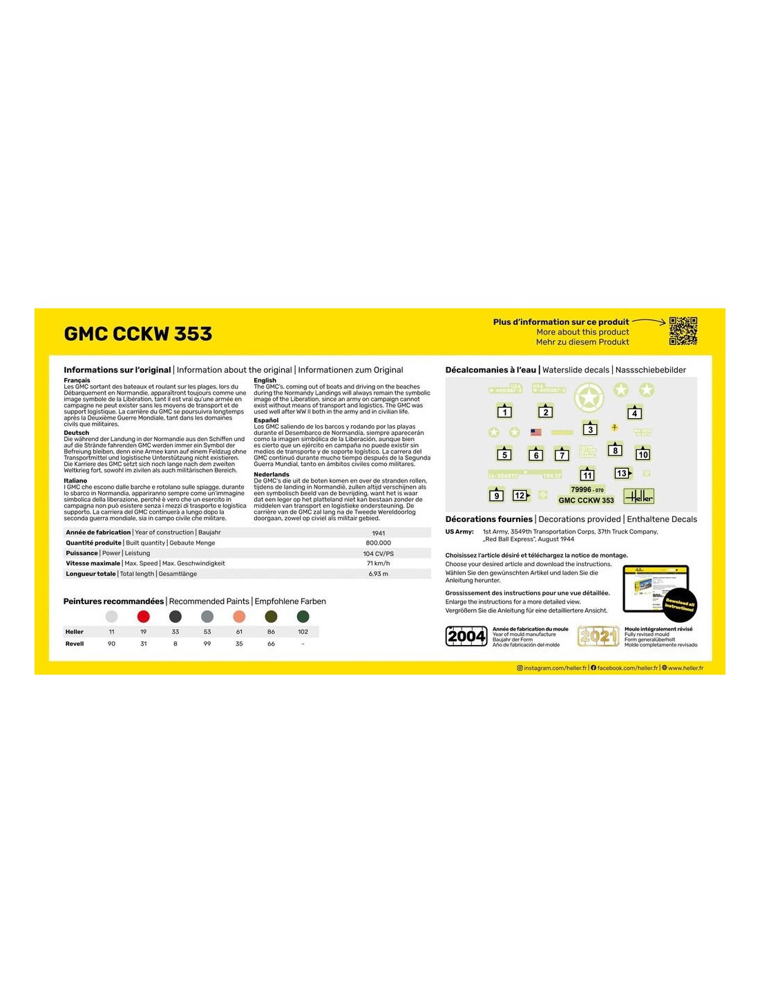 Les Gmc sortant des bateaux et roulant sur les plages, lors du Débarquement en Normandie, apparaîtront toujours comme une image symbole de la Libération, tant il est vrai qu’une armée en campagne ne peut exister sans les moyens de transport et de support logistique. La carrière du Gmc se poursuivra longtemps après la Deuxième Guerre Mondiale, tant dans les domaines civils que militaires.- Type de produit : Maquette véhicule militaire