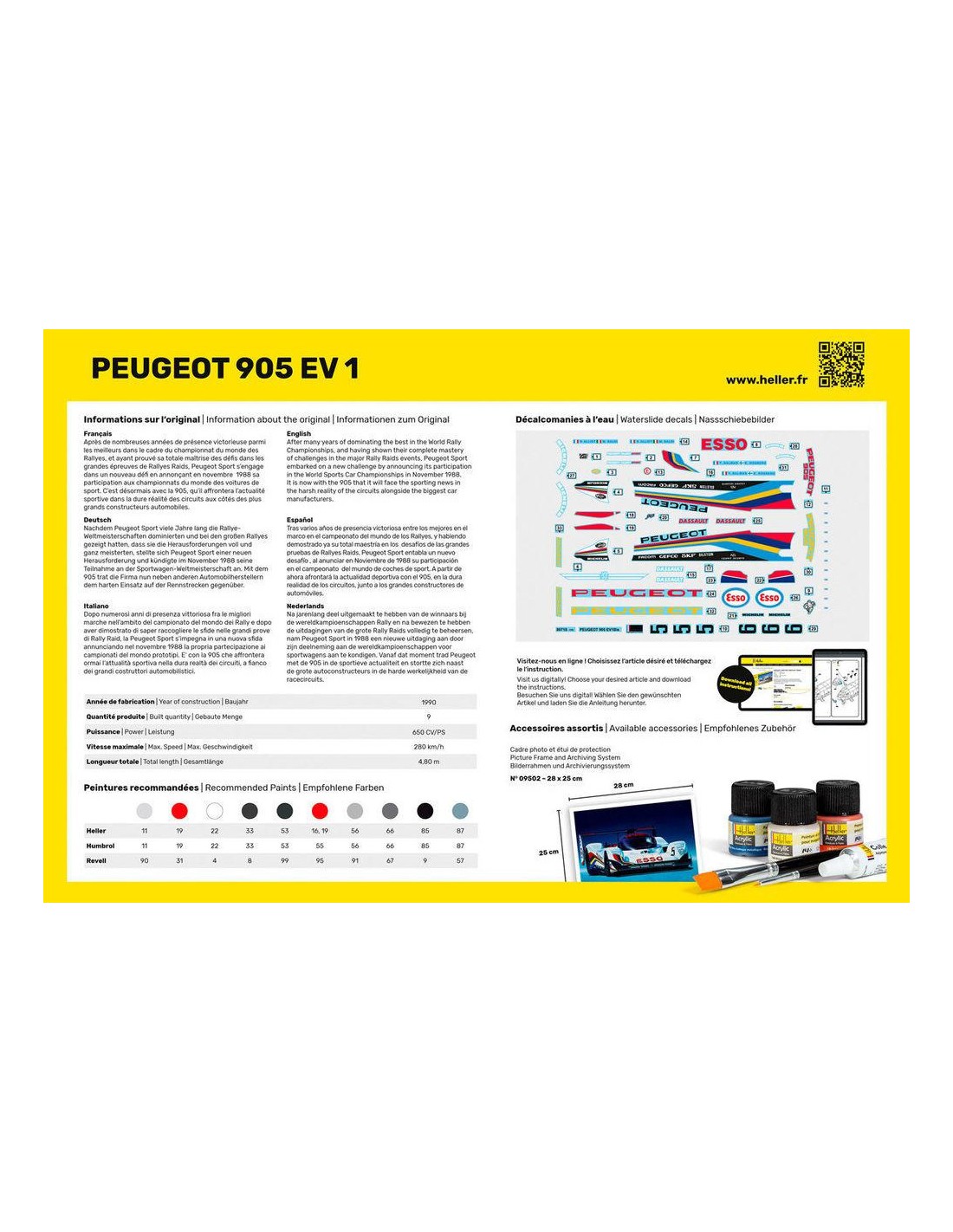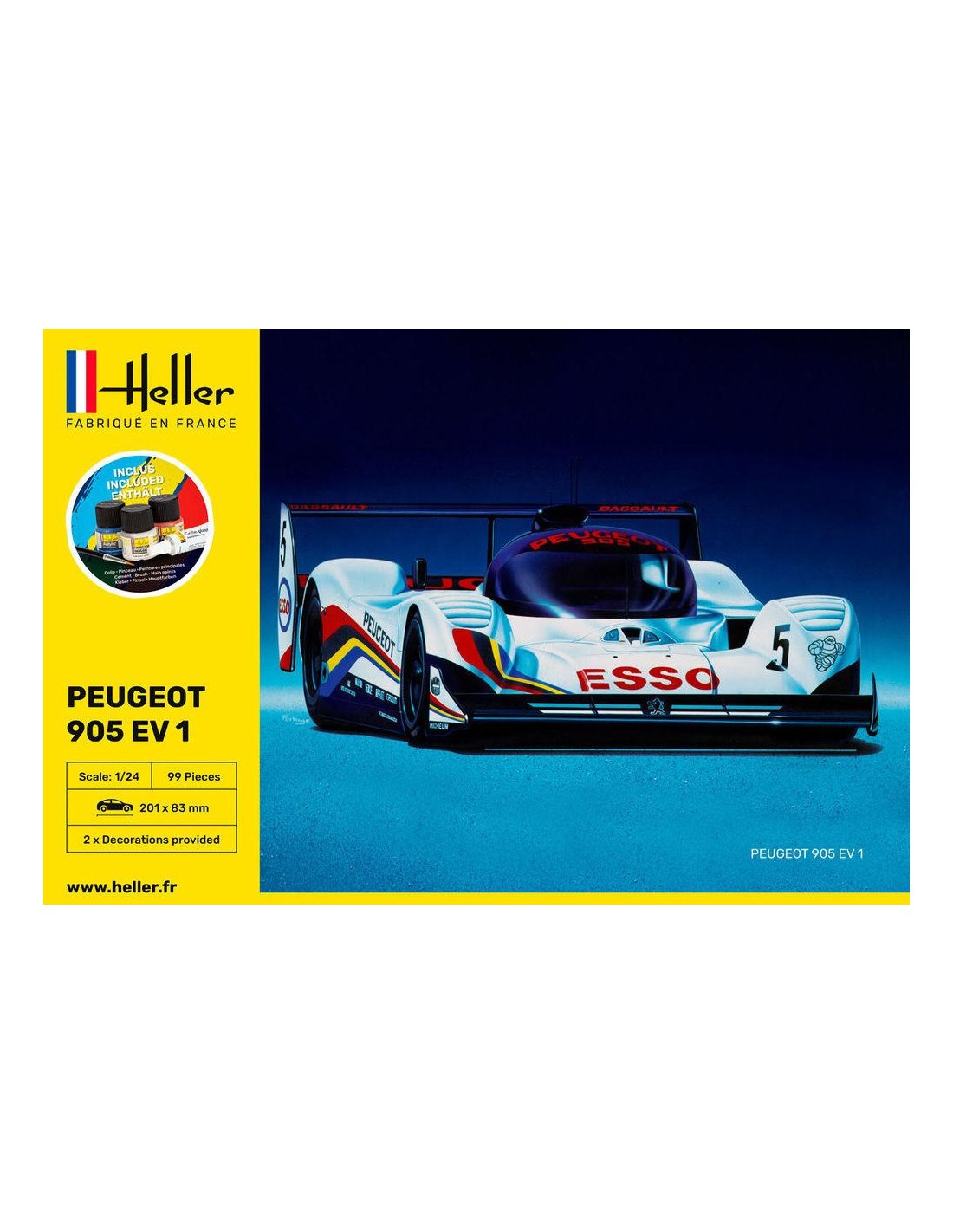 Maquette voiture - Kit de démarrage - Peugeot 905 Ev 1 1:24 - Starter Kit (Kit de démarrage tout inclus : colle, pinceau, peintures) - Heller 56718
