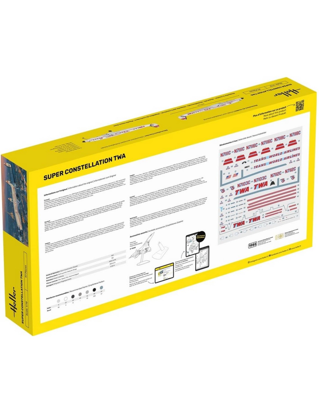 Maquette Avion Kit De DÉMarrage Super Constellation Twa 1:72 - Starter Kit (Kit de démarrage tout inclus : colle, pinceau, peintures) - Heller 58391
