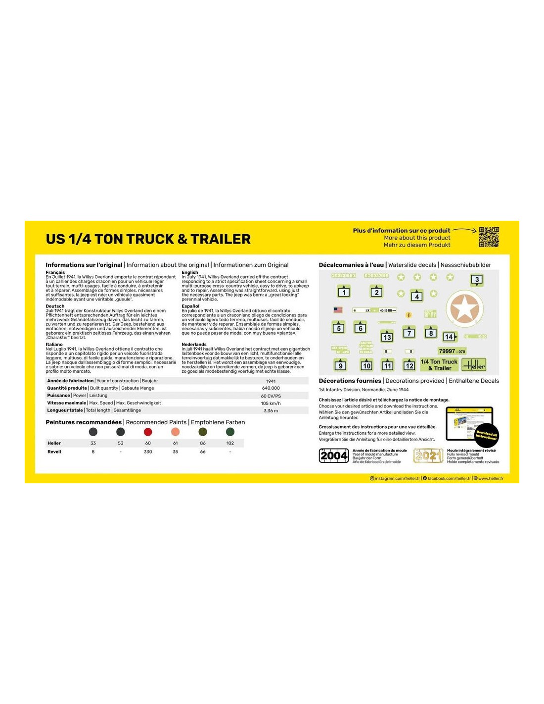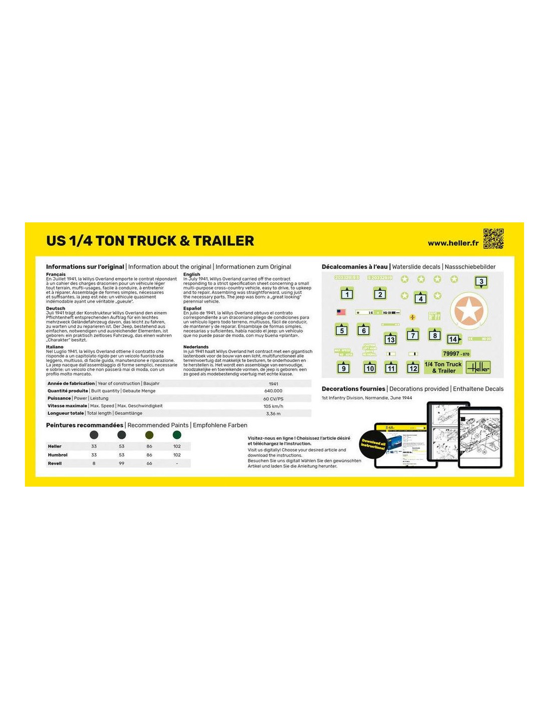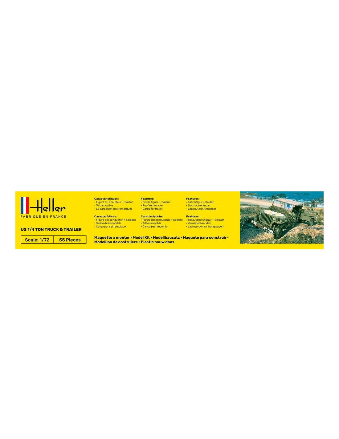 Maquette véhicule militaire - Kit de démarrage - Us 1/4 Ton Truck & Trailer 1:72 - Starter Kit (Kit de démarrage tout inclus : colle, pinceau, peintures) - Heller 56997