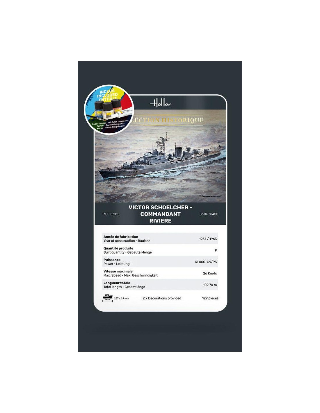 Maquette bateau - Kit de démarrage - Victor Schoelcher - Commandant Riviere 1:400 - Starter Kit (Kit de démarrage tout inclus : colle, pinceau, peintures) - Heller 57015