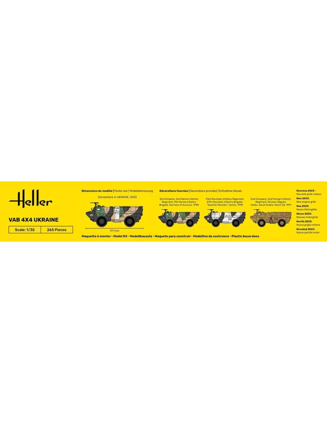 Maquette véhicule militaire : Starter Kit (Kit de démarrage tout inclus : colle, pinceau, peintures) : Vab 4x4 Ukraine - Heller 57130