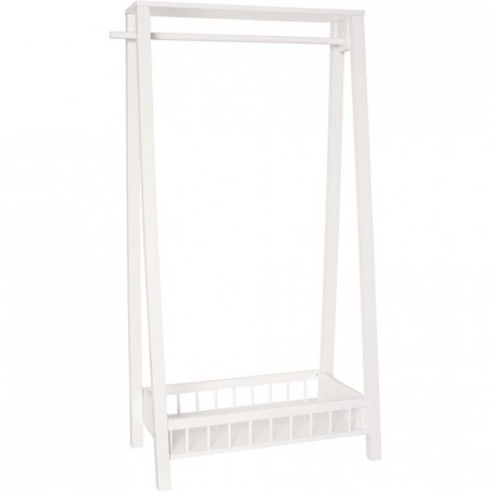 Portant pour vêtements en bois. Equipé d'un rangement en partie inférieure pour pouvoir y mettre chaussures ou autres accessoires. Composition : Bois peint blanc. .