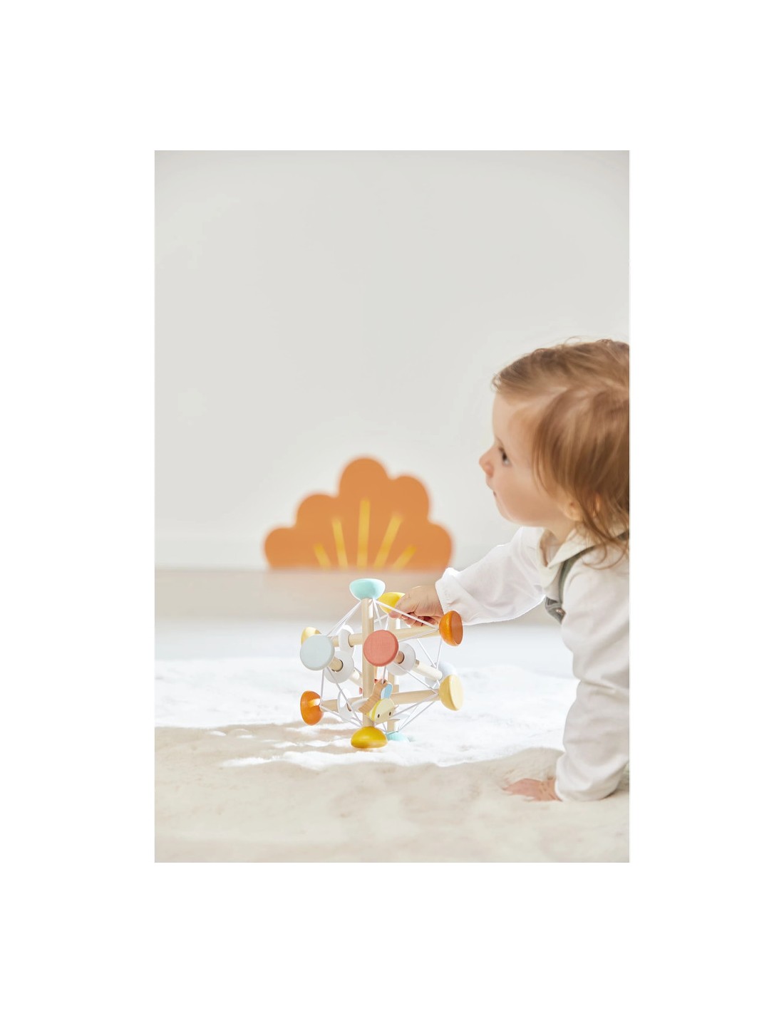 Issue de notre collection de jouets d’éveil en bois Pure, cette balle sensorielle est composée de bois certifié Fsc™.