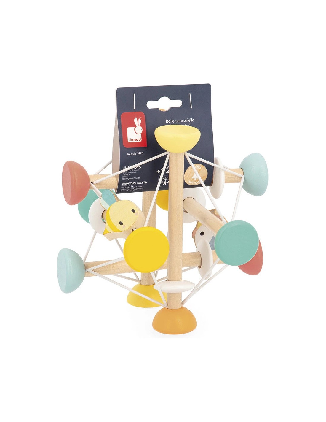 Quelle est jolie cette balle ! Les bébés dès 1 an stimulent leur motricité fine et développent leur dextérité avec cette balle sensorielle en bois. Unique en son genre, elle se tord et s'étire selon les envies. Oh, on dirait bien qu'il y a des compagnons de jeu !