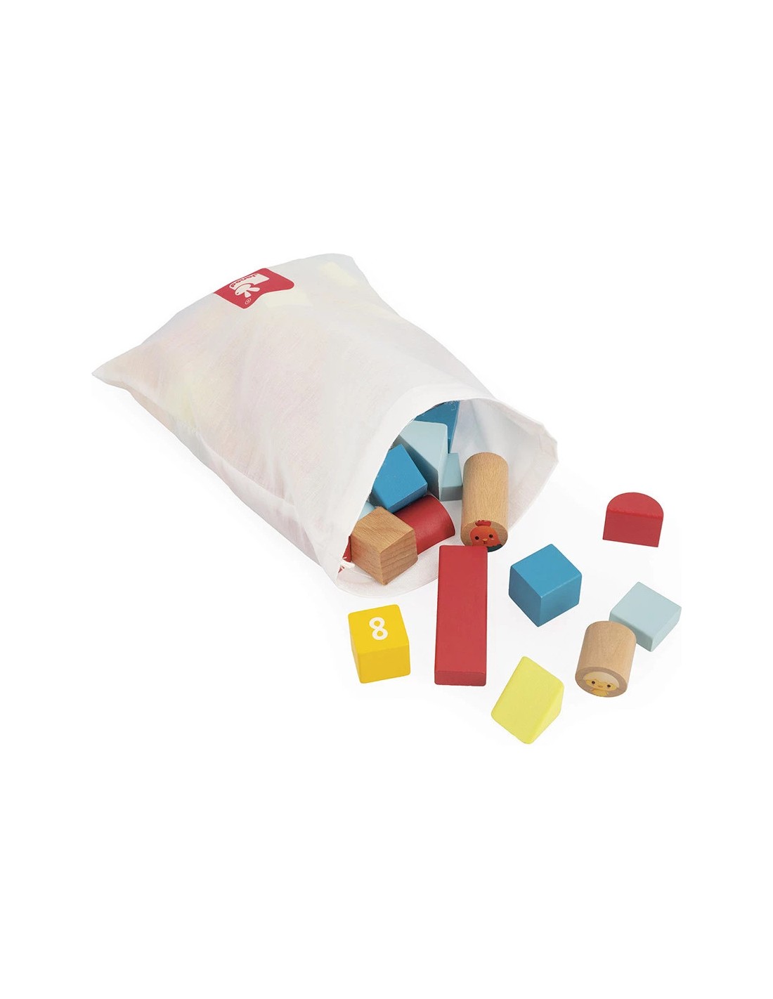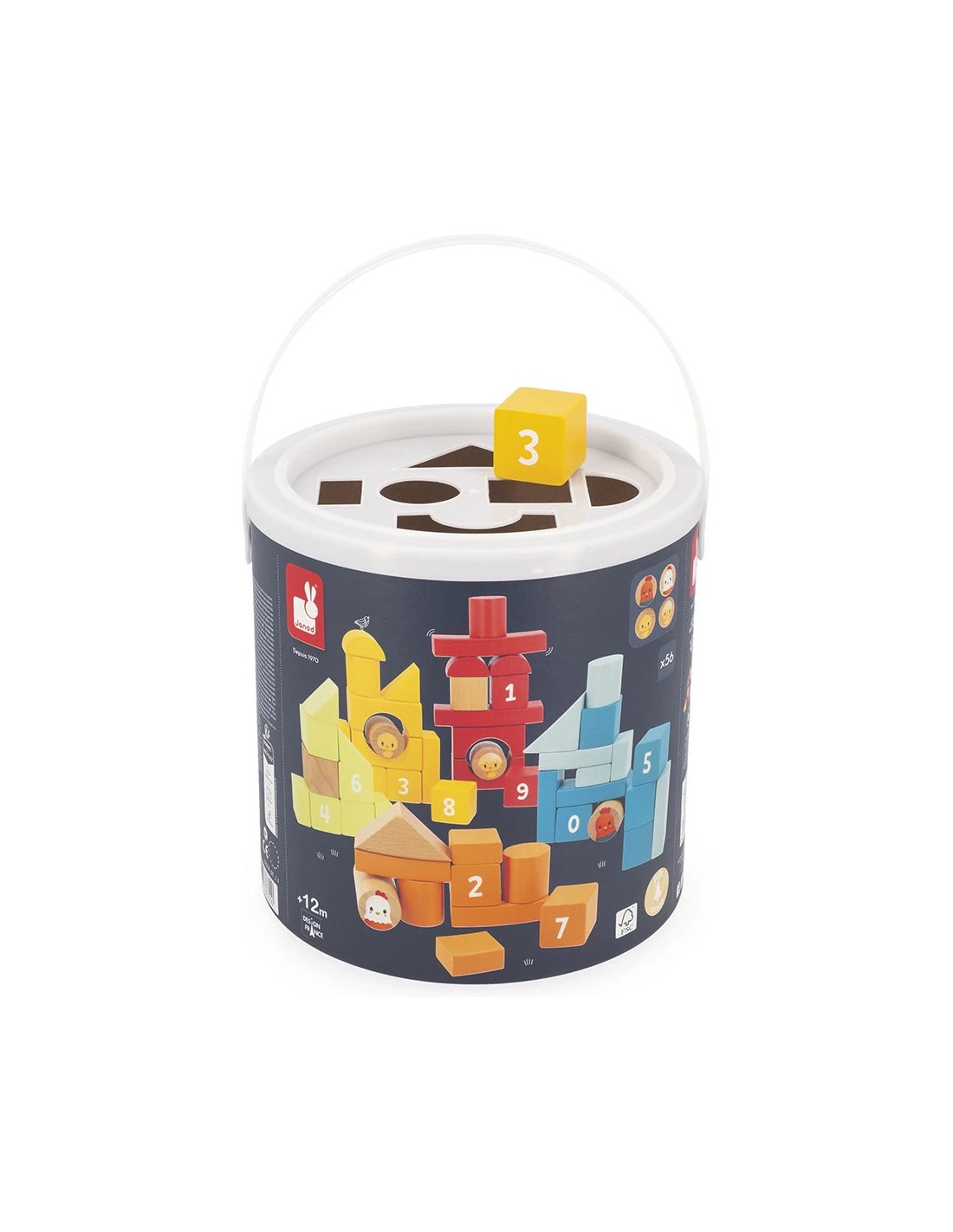 Encore plus ludique, le baril fait aussi office de boîte à formes grâce à son couvercle découpé selon les formes des pièces. Les enfants apprennent à reconnaître les formes, à les manipuler et à les insérer au bon endroit. Livré avec un sac en coton, les pièces se rangent et se transportent facilement.