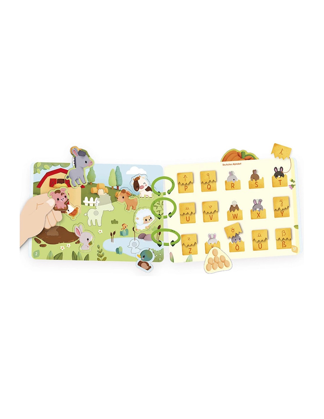 Au total, 158 pièces sont à placer dans le livre ! Les illustrations douces et vivantes ont été pensées pour éveiller la curiosité, enrichir le vocabulaire et développer la motricité fine. Et ce n’est pas tout : les plus grands pourront aussi s’initier aux chiffres et à l’alphabet, en majuscules et minuscules.