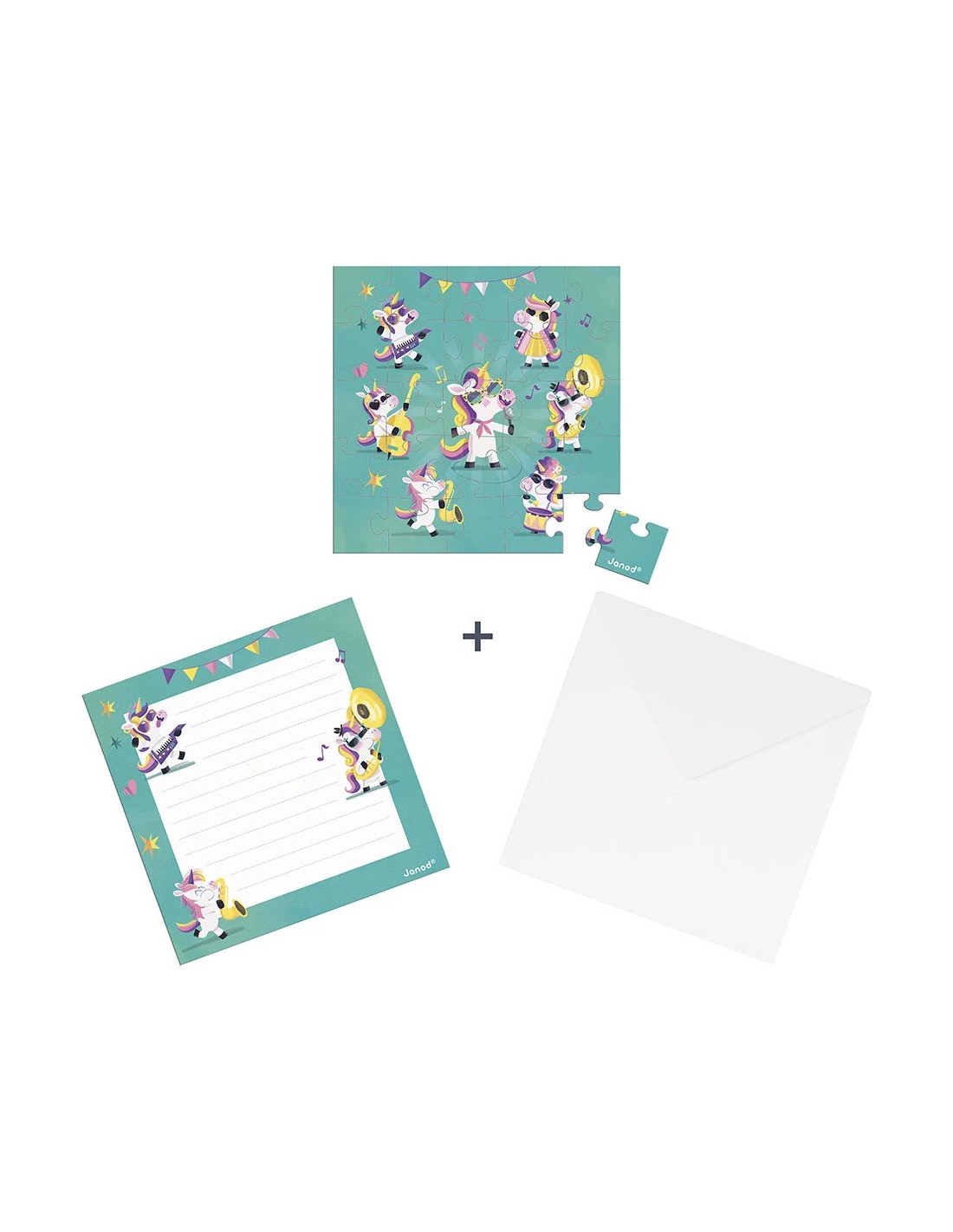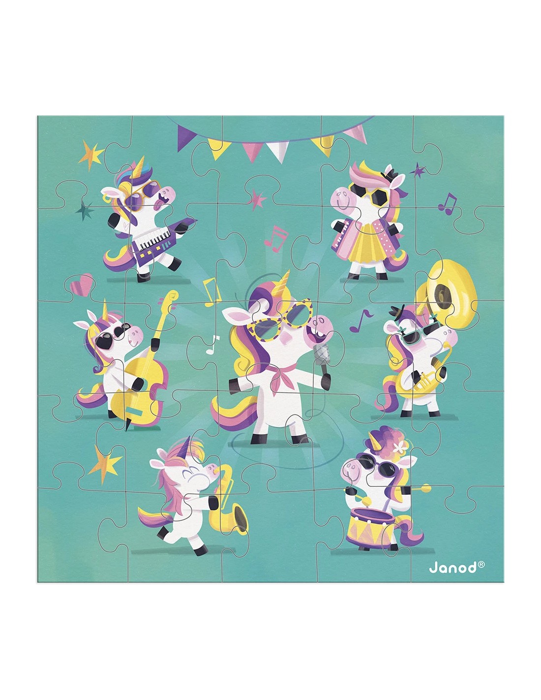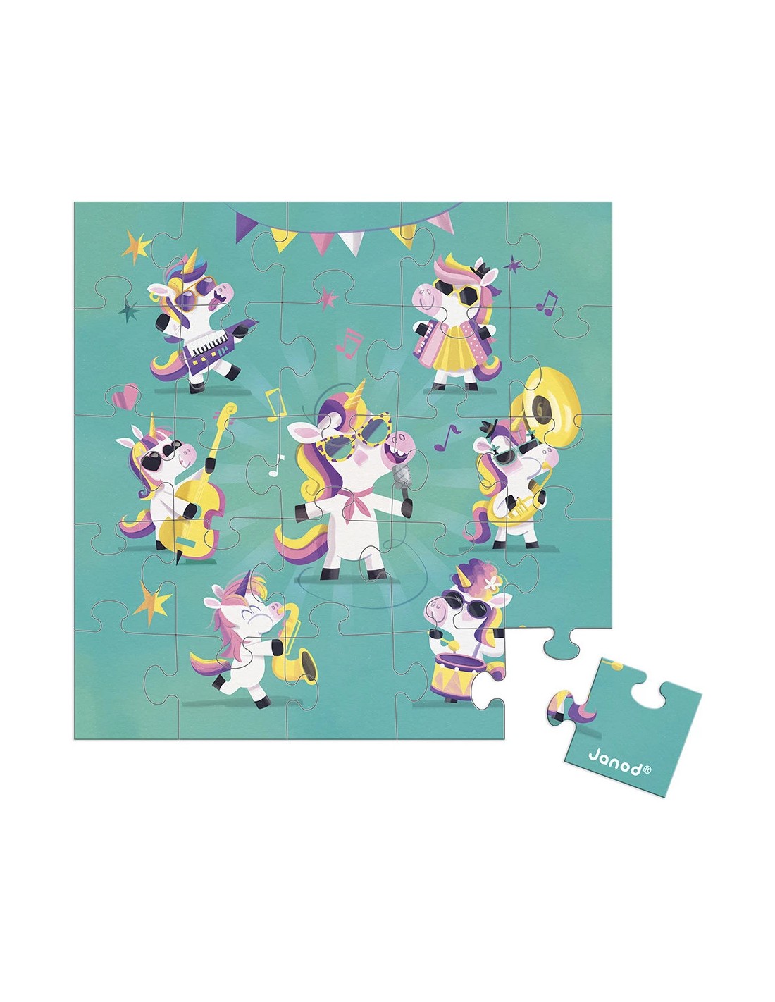 Les starts de la fête sont en place, prêtes à mettre le feu ! Avec cette carte puzzle de 25 pièces, les enfants dès 3 ans découvrent un groupe de licornes, lunettes de soleil sur le nez et instruments à la main. Un univers coloré et festif, idéal pour célébrer un joyeux événement !