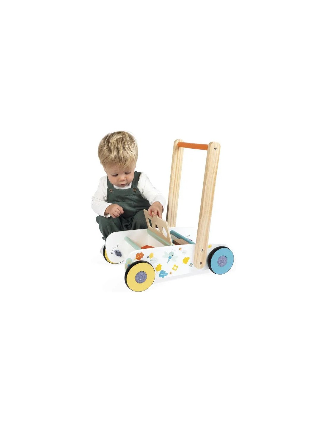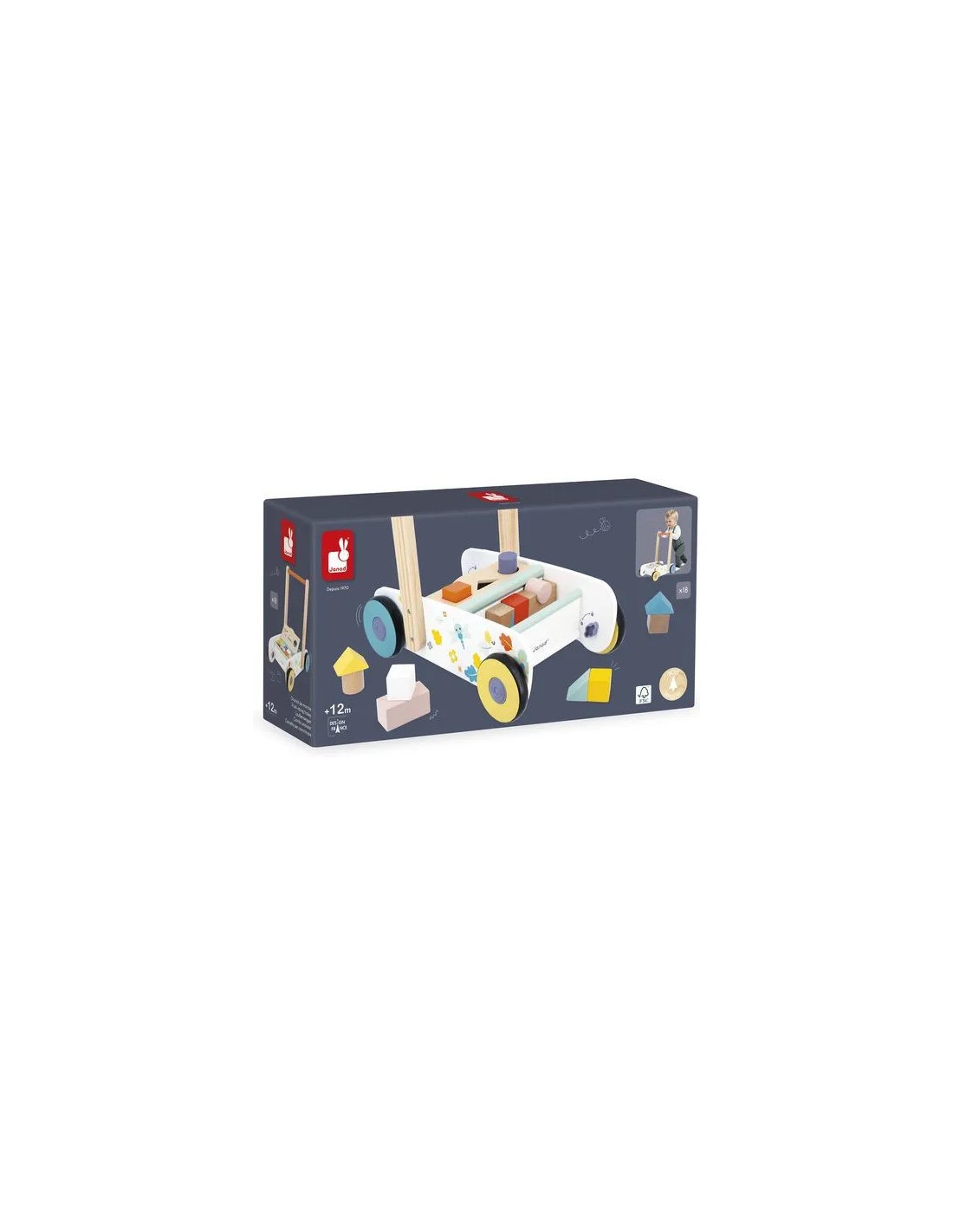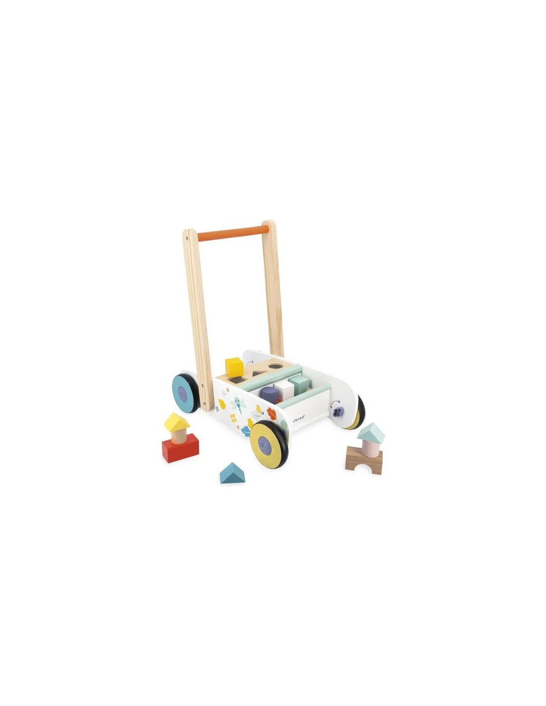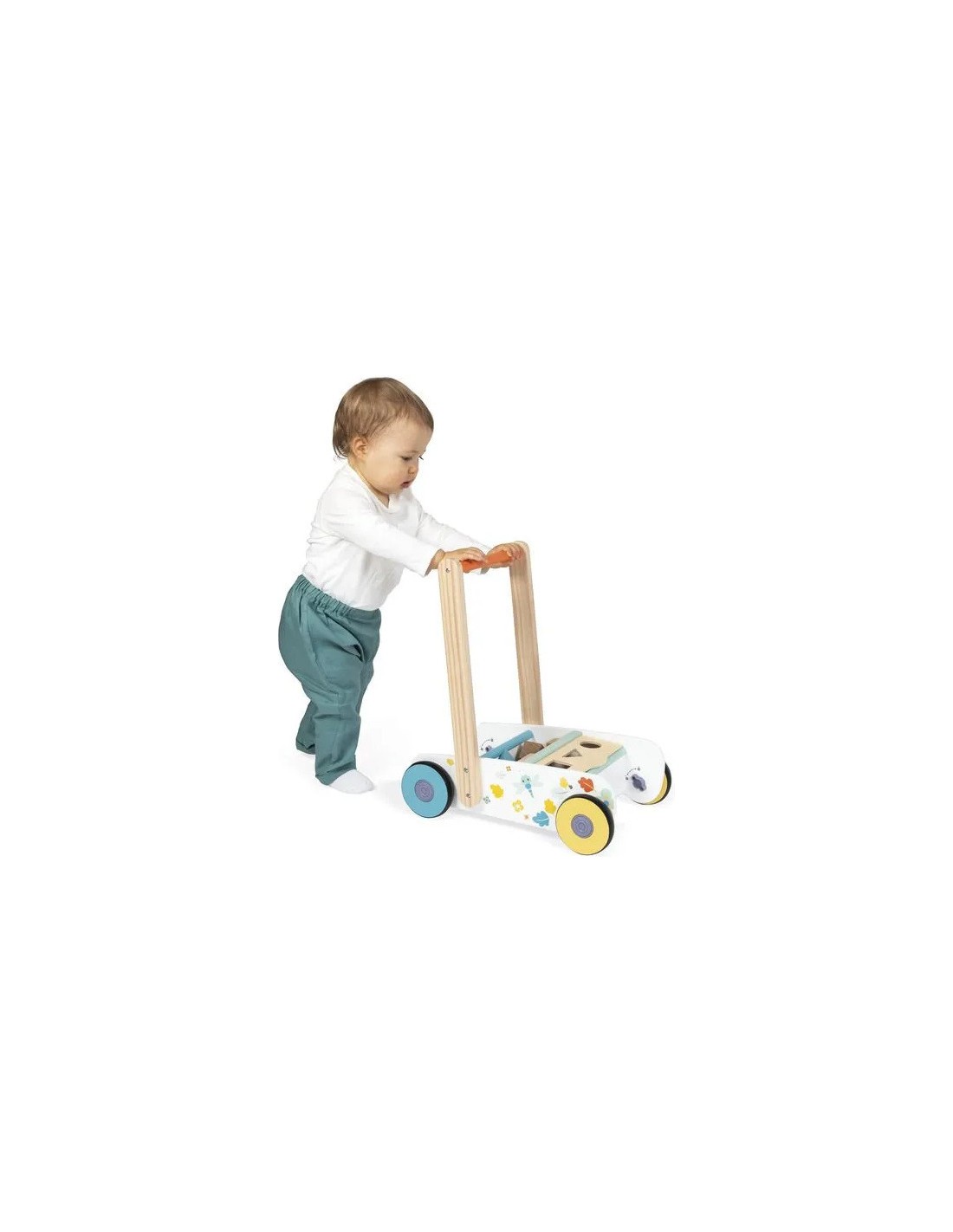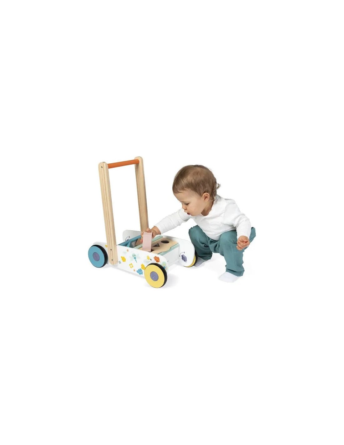 Promenons-nous dans les bois ! Ce joli chariot aux illustrations inspirées de la forêt accompagne les bébés dès 1 an dans l'apprentissage de la marche et dans leurs découvertes. Grâce à une boîte à formes présente au coeur du chariot, les tout-petits s'amusent à insérer les 18 blocs en bois dans les emplacements dédiés.