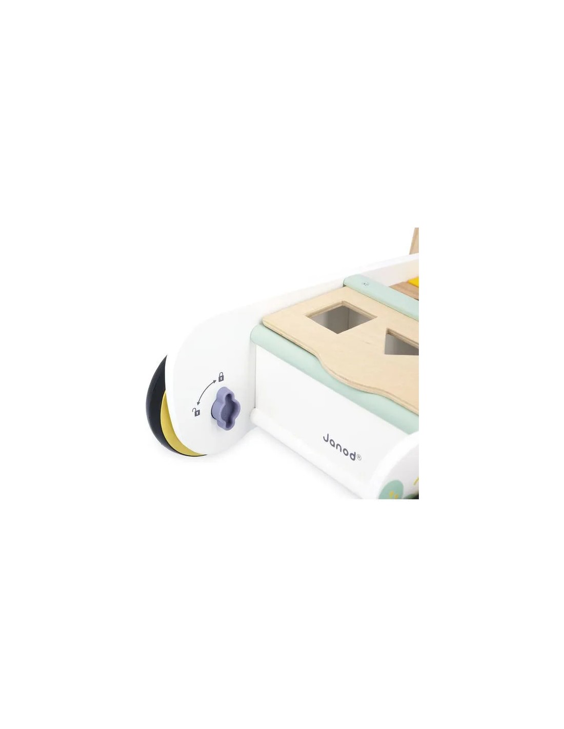 Une activité ludique qui permet d'apprendre les formes, mais aussi les couleurs tout en développant la motricité fine et la dextérité. Une partie rangement est même intégrée au chariot ! Super pratique pour emmener doudou en balade ! Pour plus de sécurité, le chariot est équipé d'un système de frein qui permet de bloquer les roues et de les libérer progressivement afin que bébé puisse avancer à son rythme.