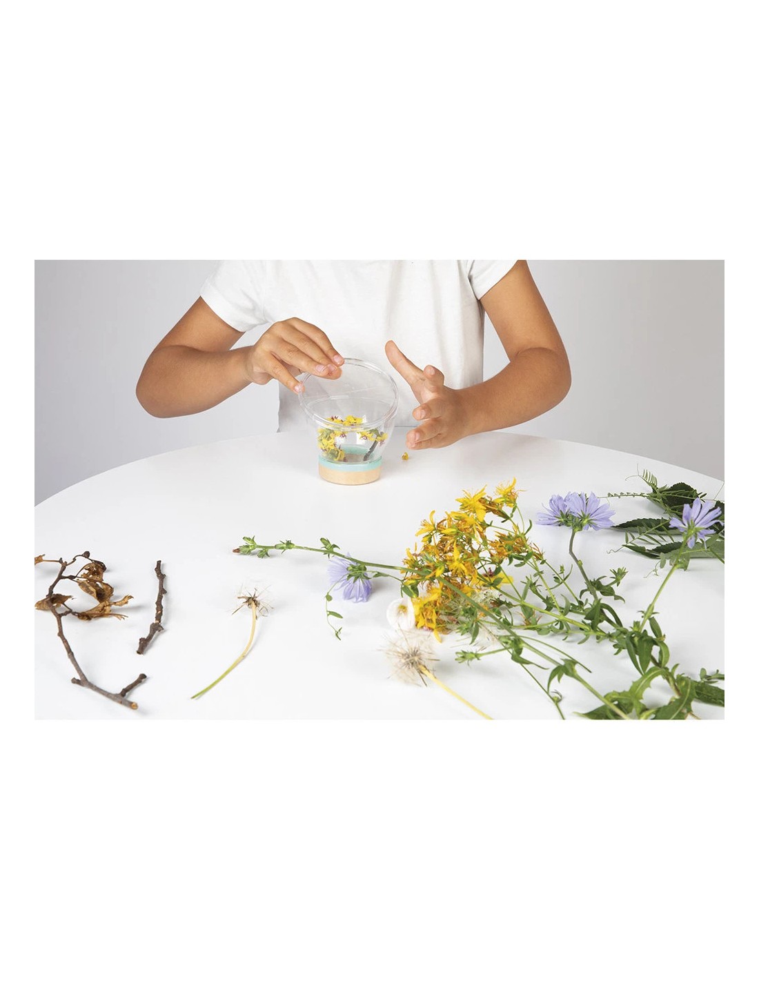 Une graduation sur le couvercle permet même de mesurer les trouvailles et d’aller plus loin dans l’observation ! Ce jeu d’exploration est parfait pour éveiller la curiosité des enfants. Il fait partie de la gamme Happy Garden : une collection dédiée à la découverte de la nature et au jardinage, avec des outils et des accessoires pour observer et explorer comme les grands.