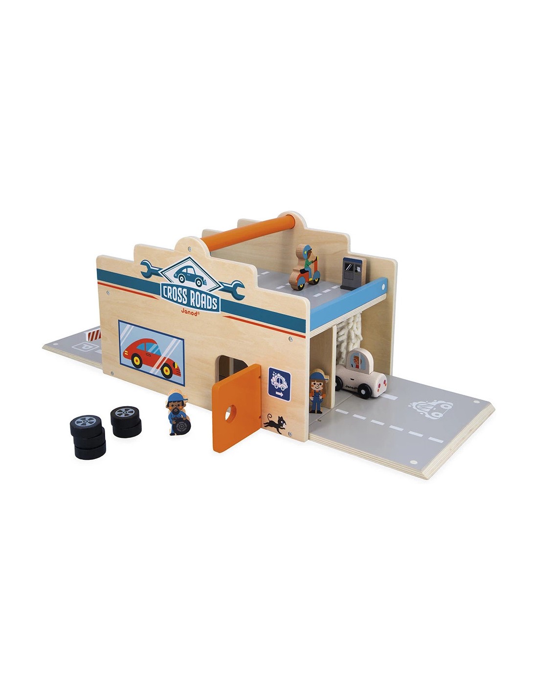 « Une panne ? Allons voir les mécanos ! » Ce grand garage en bois convient aux enfants, dès l’âge de 2 ans. Avec ses multiples fonctionnalités, c'est Le bon endroit pour confier sa voiture : elle repart prête pour de nouvelles aventures ! Avec ses nombreux accessoires, ce garage rend le jeu encore plus réaliste et stimule l’imagination des petits mécanos !