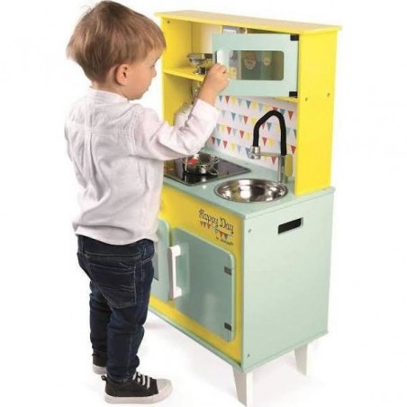 Avec la grande Cuisine Janod Happy Day, fait comme papa et maman, prépare de délicieux repas pour tes amis et deviens un vrai petit chef !