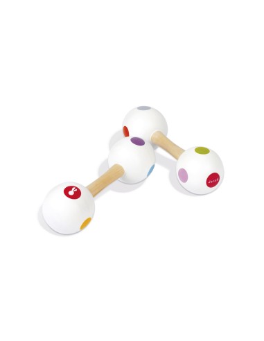 Découvrez le Maraca haltère de la gamme Confetti de Janod, un Instrument de Musique pour les enfants à partir de 1 an.