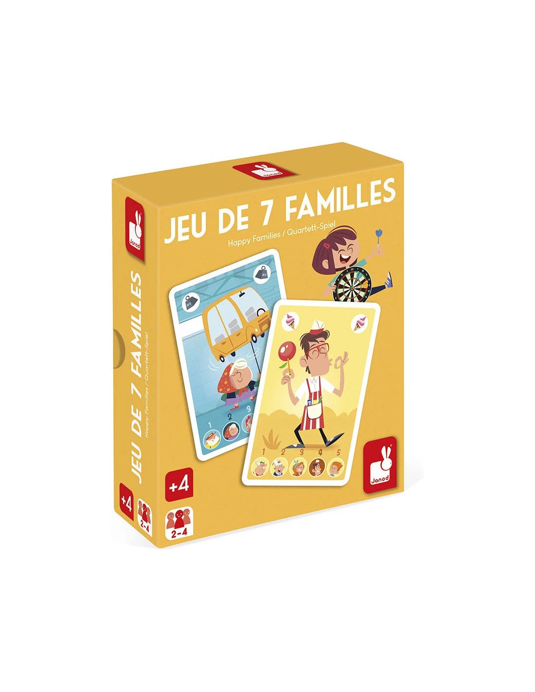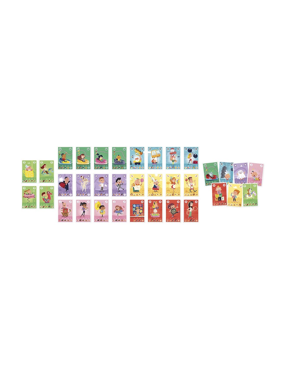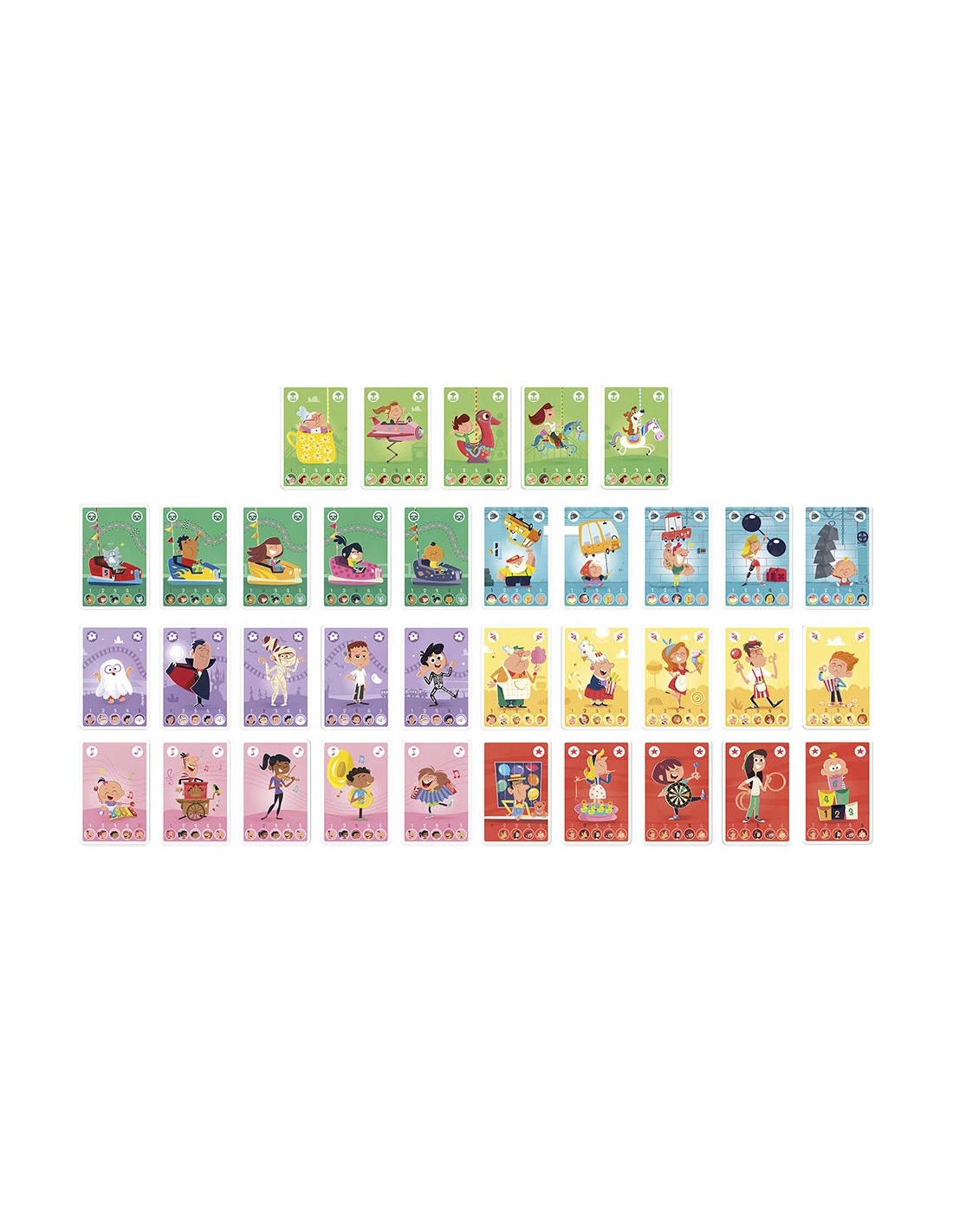 Un grand classique revisité pour les enfants dès 4 ans ! Ce jeu des 7 familles revisité invite les enfants à retrouver les 5 membres de familles hautes en couleur dans un univers de fête foraine : champions de jeux d'adresse, vendeurs de confiseries ou encore musiciens. Le principe est simple : demander aux autres joueurs les cartes manquantes pour compléter ses familles. Celui qui en réunit le plus gagne la partie ! Un jeu idéal pour développer le langage, la mémoire et le sens de l’observation, tout en s’amusant avec des personnages rigolos. Ce jeu de cartes est fabriqué à partir de carton Fsc™.