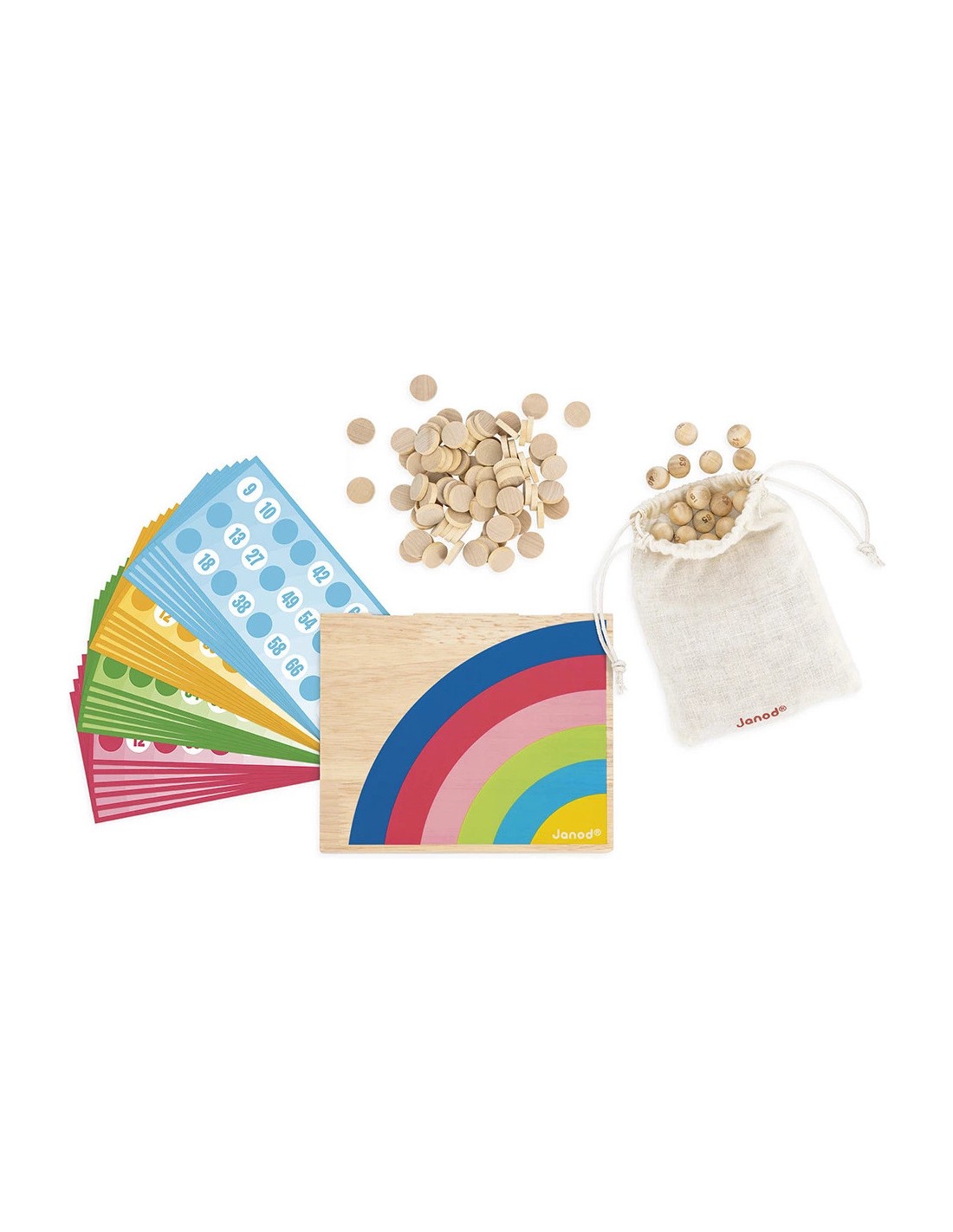 Un grand classique revisité avec style ! Avec ce jeu de bingo coloré en bois, les enfants apprennent à reconnaître les chiffres et à développer leur concentration tout en créant des moments de complicité en famille. À chaque tirage, ils observent, repèrent et placent les bons jetons sur leur grille.