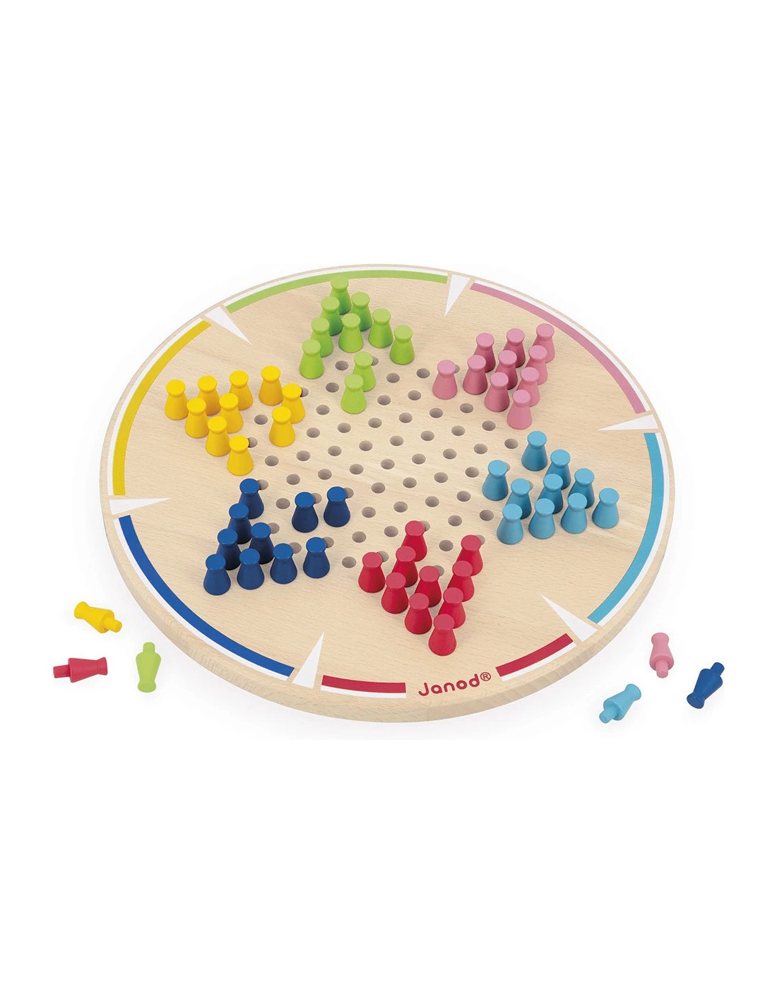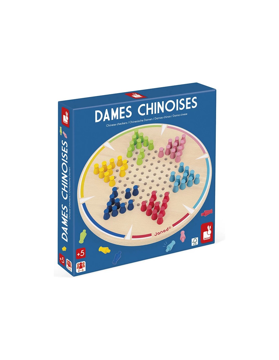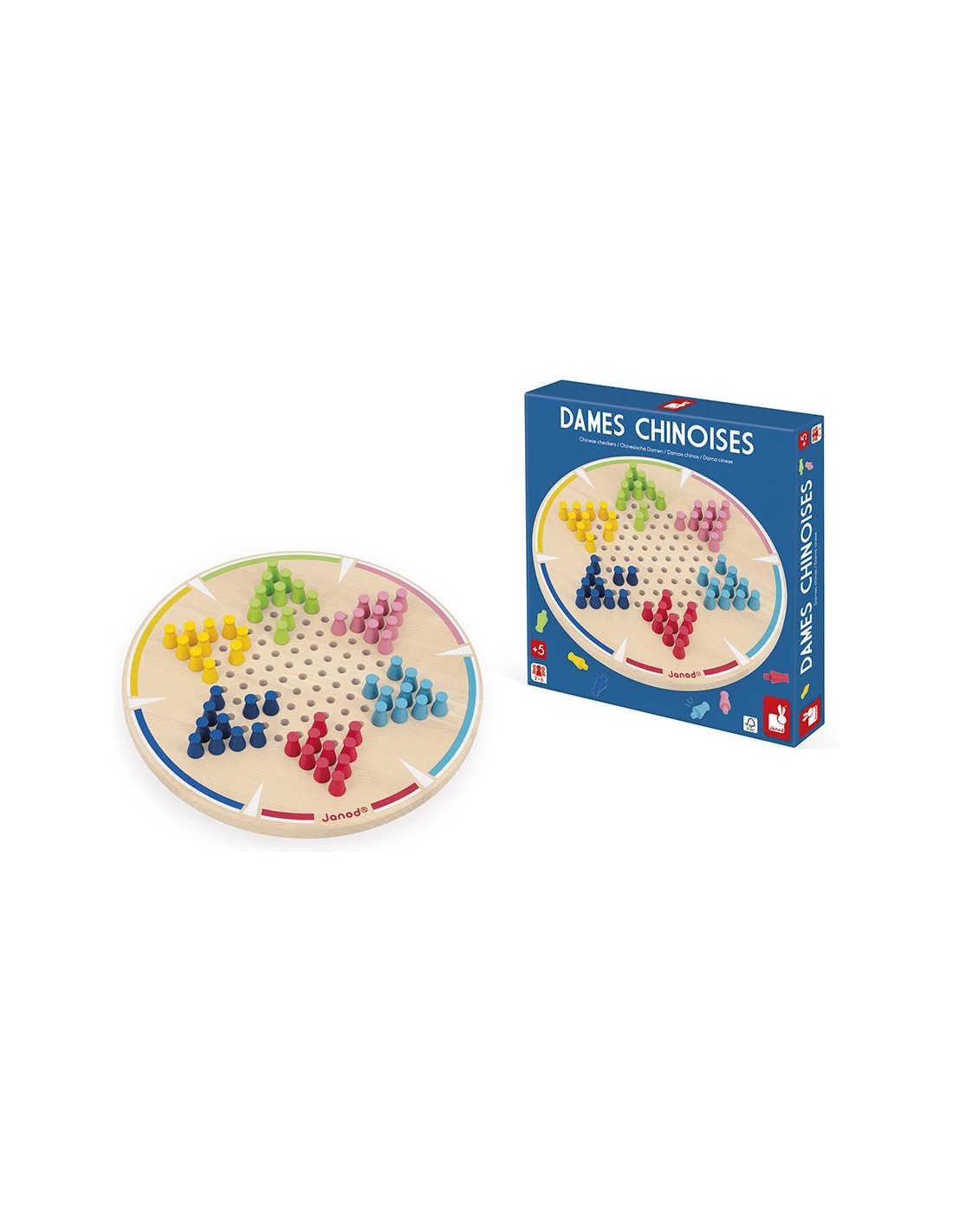 Un saut par ici, un saut par là… et c'est gagné ! Ce jeu de dames chinoises en bois, composé de 60 pions colorés, est idéal pour initier les enfants dès 5 ans aux jeux de stratégie. Avec ses 10 pions colorés, chacun choisit sa couleur et démarre dans une pointe de l’étoile.