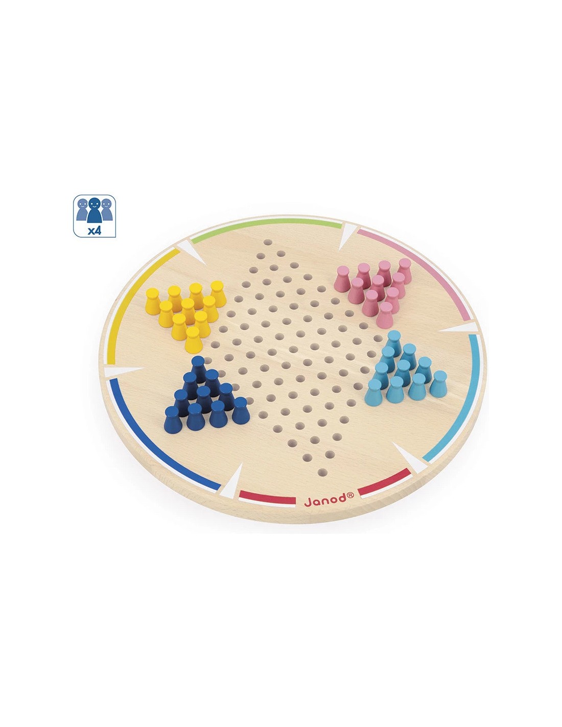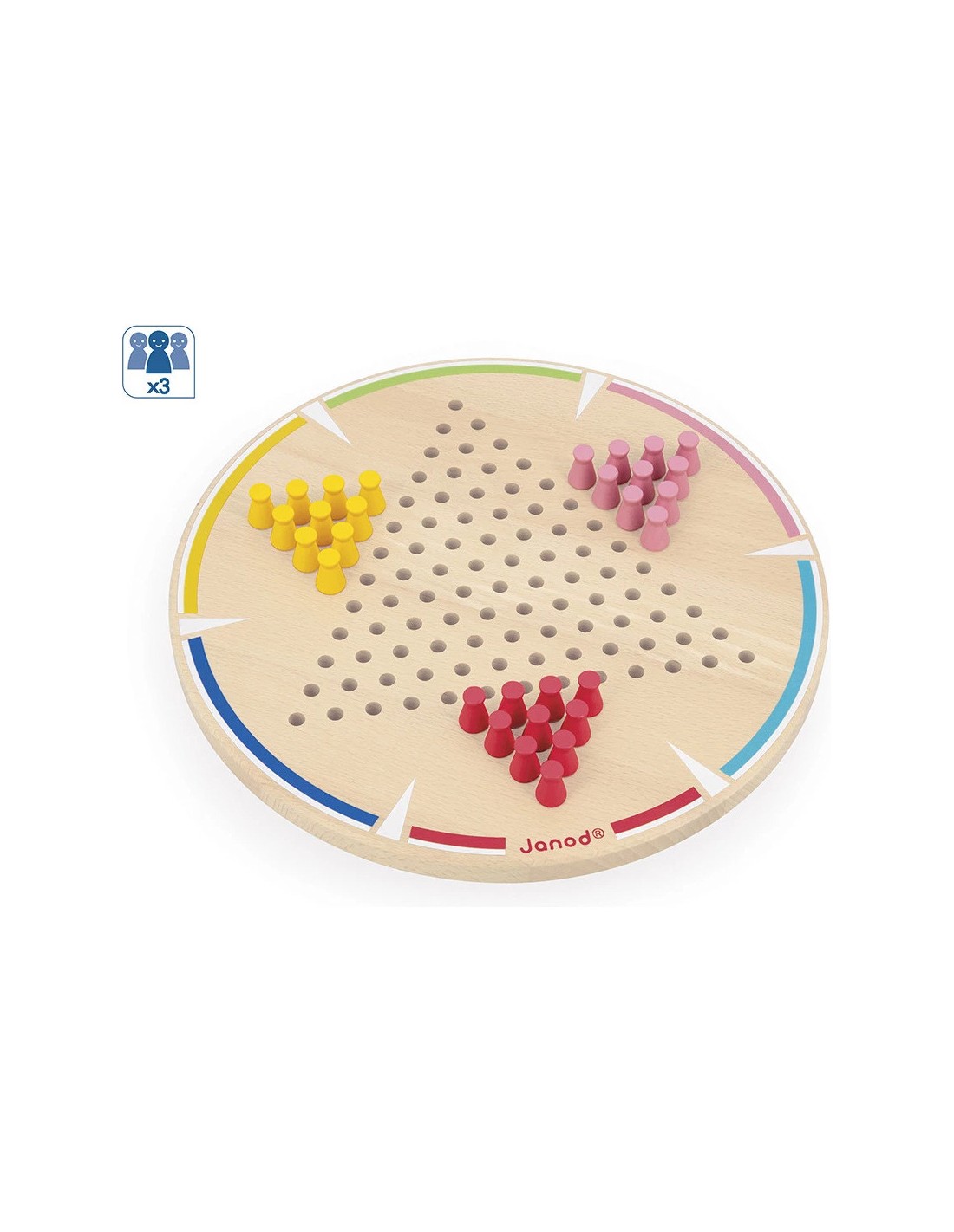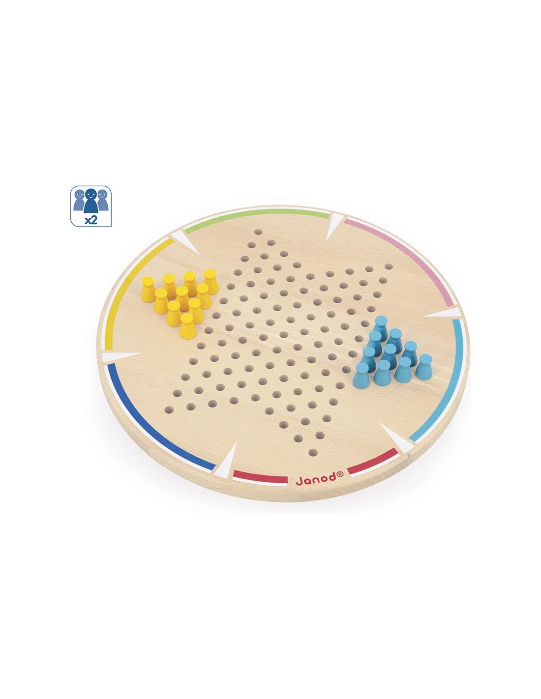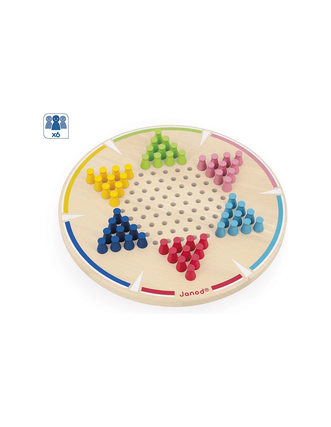Un saut par ici, un saut par là… et c'est gagné ! Ce jeu de dames chinoises en bois, composé de 60 pions colorés, est idéal pour initier les enfants dès 5 ans aux jeux de stratégie. Avec ses 10 pions colorés, chacun choisit sa couleur et démarre dans une pointe de l’étoile.