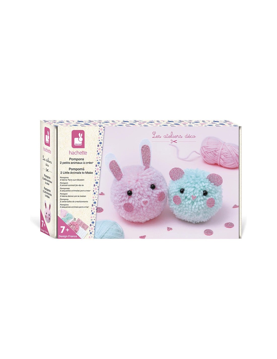 Réalisez 2 animaux trop mignons en pompons ! Dès 7 ans, les enfants peuvent s'amuser à créer et décorer des pompons, réalisant de jolies créations. Cette activité créative et ludique développe la patience et la concentration de l'enfant, car chaque étape demande soin et précision, tout en offrant la satisfaction de réussir un joli résultat. À l'aide du livret d'instructions, il suffit de faire passer la laine dans l'outil à pompon pour réaliser le corps des animaux. Trop pratique, non ? Avec cet accessoire, aucun risque de rater son pompon ! Ce kit comprend 2 grosses pelotes de laine pour un rendu bien fluffy. Alors, ne ménagez pas sur la quantité ! Ensuite, il ne restera plus qu'à ajouter les détails et les accessoires à l'aide des éléments décoratifs fournis. Amusez-vous à compléter vos pompons avec des oreilles rigolotes, des yeux malicieux et des accessoires scintillants ! Des planches prédécoupées aideront votre enfant à décorer ces pompons en toute simplicité. Ainsi prendront vie deux adorables animaux : un lapin rose et un ourson bleu ! Ces deux compagnons peuvent s'accrocher au sac ou à la trousse de votre enfant : le livret vous guide dans la création de cette attache. Issu de la collection "Les Ateliers déco", ce kit contient : 2 grosses pelotes de laine, 1 planche de feutrine autocollante, 1 planche pailletée autocollante, des clous en plastique pour faire les yeux, 1 outil à pompon, 1 tube de colle transparente et 1 livret explicatif.