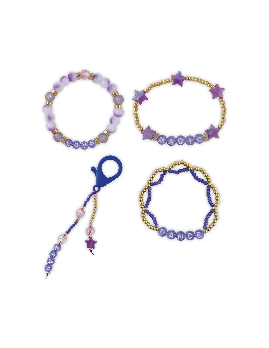 Des bijoux Pop Star à créer pour briller sous les projecteurs ! Ce coffret créatif permet de réaliser 4 bracelets tendance et 1 porte-clés unique, parfaits pour afficher son style de star. Les enfants dès 7 ans pourront suivre les étapes illustrées dans le livret pour reproduire les modèles proposés… ou inventer leurs propres créations ! Amusez-vous à composer des mots avec les 18 perles lettres, ajouter une touche brillante avec les perles étoiles, et jouer avec les couleurs grâce aux perles rondes, à facettes et transparentes. Votre enfant peut aussi y ajouter les perles dorées pour un look encore plus glamour ! Le coffret contient tout le nécessaire : 120 perles rondes en métal, 60 perles bleues, 12 perles en métal, 4 perles à facettes, 4 perles transparentes, 12 perles mauves transparentes, ainsi que du fil élastique, du fil de jade coloré et un mousqueton en plastique pour le porte-clés. Cette activité créative développe la motricité fine et la créativité, tout en offrant des heures de plaisir et nécessite 50 minutes pour réaliser ces créations.