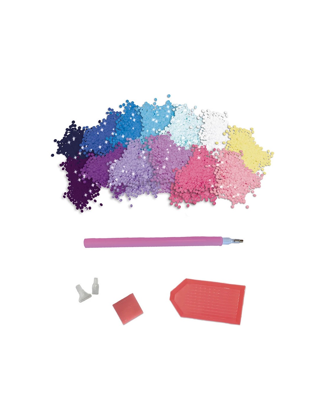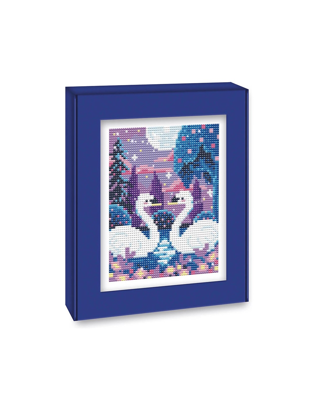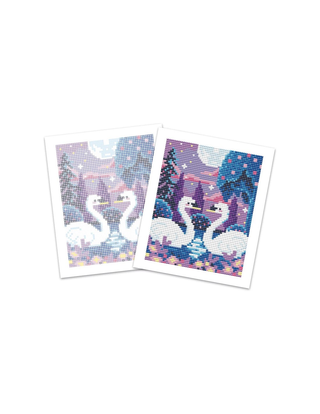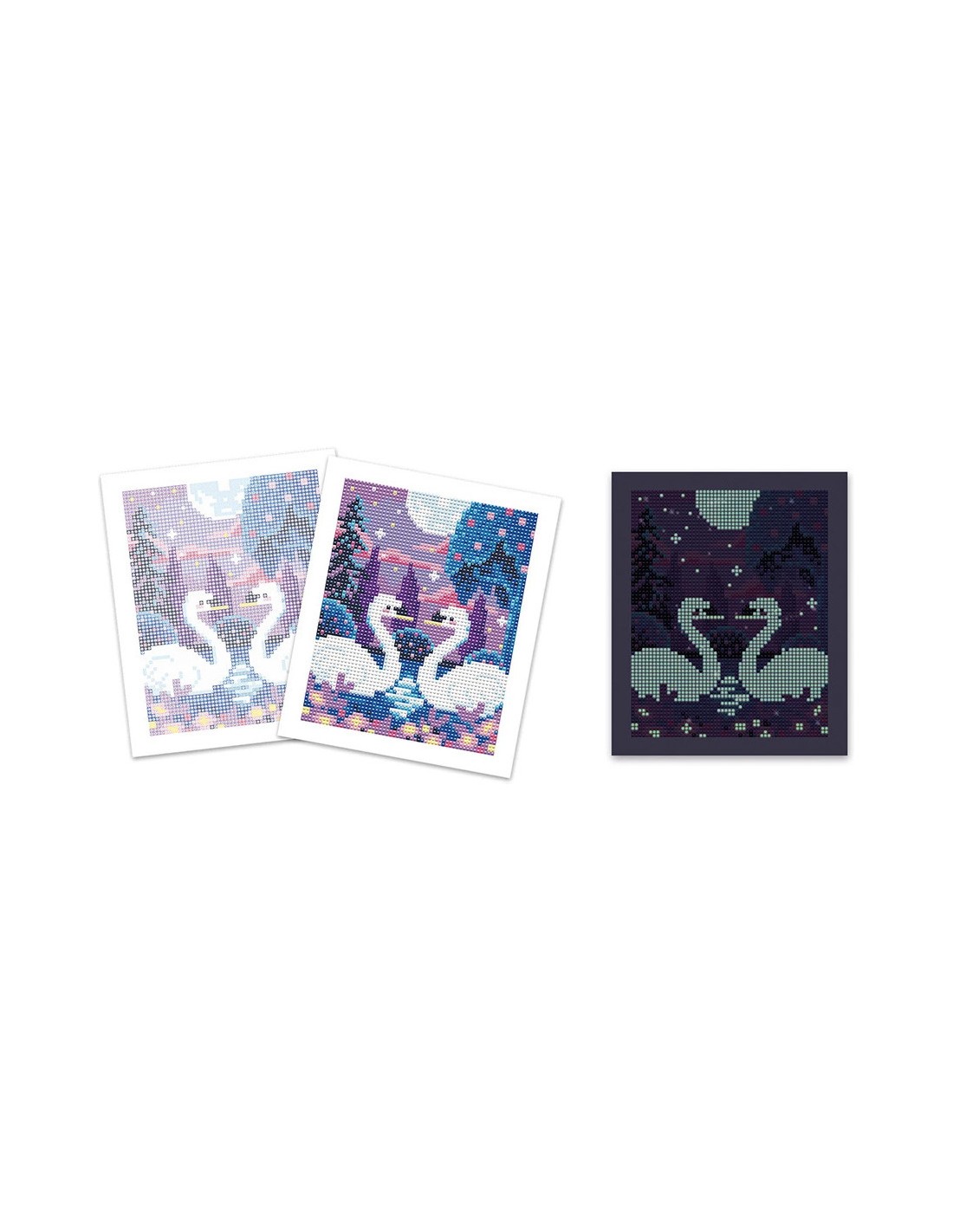 Qu'ils sont beaux ces deux cygnes au clair de lune ! Délicatesse et précision sont au rendez-vous avec ce kit créatif de peinture diamant, idéal pour les enfants dès 8 ans ! Avec cette technique, inutile d’utiliser aquarelle et eau : de petits strass scintillants permettent de composer un tableau aux détails très raffinés. Cette activité dure environ 3h et stimule la créativité et la motricité fine, tout en développant la patience. Un livret, présent dans le kit créatif, guide étape par étape la réalisation du modèle. Ce coffret permet ainsi de décorer 1 tableau à l’aide de mini-strass de couleurs variées. L’enfant commence par verser les mini-strass dans le plateau rainuré pour les aligner et faciliter leur manipulation. Il prépare ensuite le stylet en appuyant sa pointe dans le carré de gomme : cela dépose une petite quantité de matière qui rend la pointe légèrement collante. Trop pratique, le stylet est doté de plusieurs embouts de différentes tailles, lui permettant d'attraper plusieurs strass en même temps ! Votre enfant peut ainsi coller chaque diamant sur le tableau. Peu à peu, le couple de cygnes et le magnifique décor qui les entoure prennent vie, pour émerveiller toute la famille ! Ce tableau est accompagné d'un cadre à construire à partir de la boite pour magnifier la création. Même dans le noir, vous pourrez admirer les cygnes grâce aux strass phosphorescents : un joli spectacle pour les yeux avant l'heure du coucher ! Issu de la collection "Les Ateliers du Calme", ce kit contient : 1 tableau autocollant (20,7 x 24,4 cm), 3900 strass (14 couleurs dont 3 couleurs phosphorescentes), 1 stylet, 1 carré de cire, 1 plateau rainuré et 1 livret explicatif.