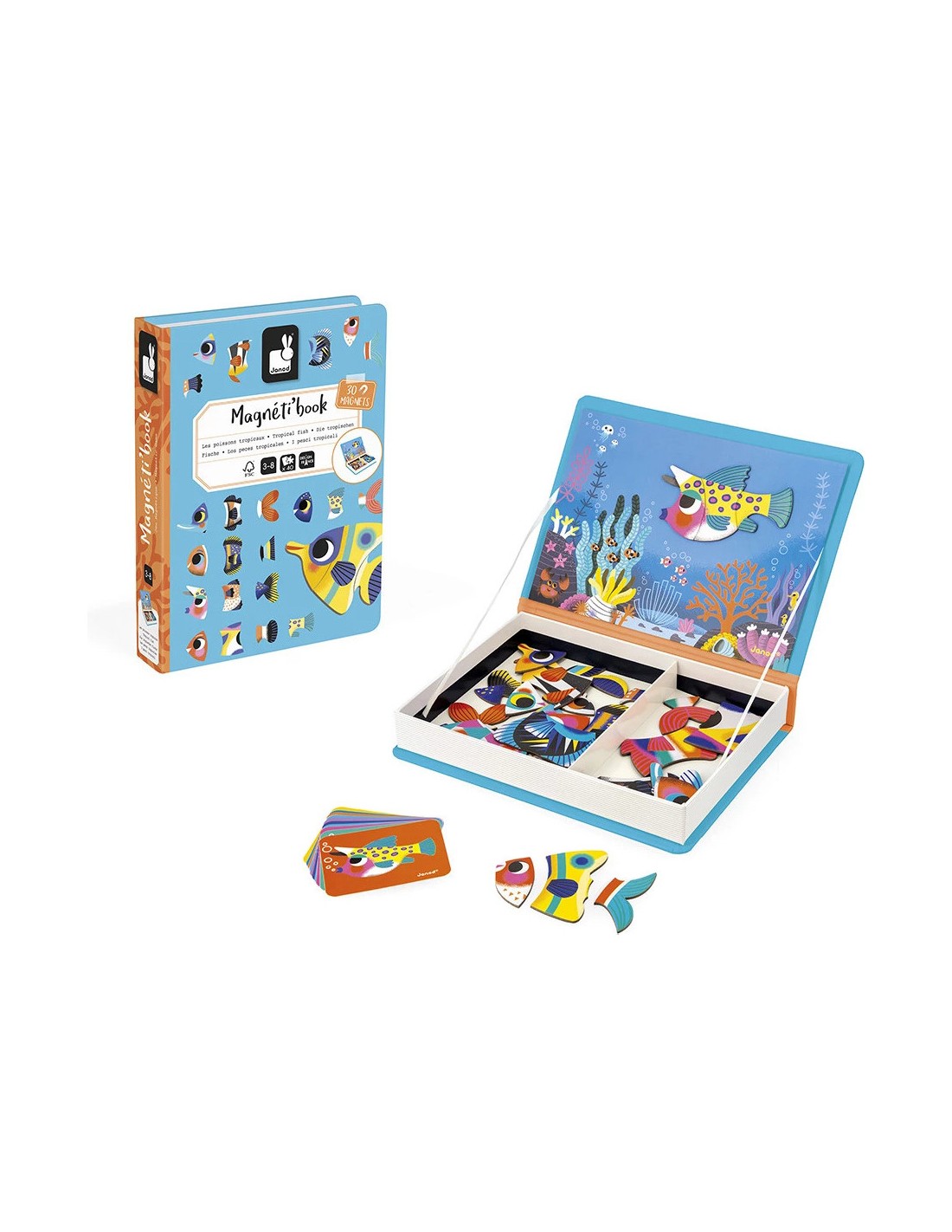 Bienvenue au coeur des eaux tropicales ! Le Magnéti'book poissons tropicaux contient 30 magnets pour que les enfants dès 3 ans donnent vie à de magnifiques poissons colorés. Super pratique grâce son format livre magnétique : il suffit à votre enfant de l'ouvrir pour trouver les aimants ainsi que les 10 cartes modèles et la face aimantée sur laquelle assembler les magnets.
